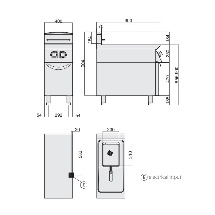 Напольная электрическая фритюрница Giorik Unika 900 FE9113 используется на предприятиях общественного питания и торговли для приготовления картофеля-фри и других продуктов путем их обжарки в большом количестве масла. Модель оснащена ванной с погружными трубчатыми электронагревателями (ТЭНами) и расположенной на наклонной фронтальной стенке электромеханической панелью управления. Внешняя облицовка корпуса выполнена из высококачественной нержавеющей стали.