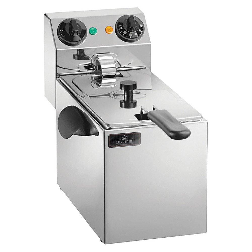 Фритюрница Luxstahl FE4G предназначена для приготовления продуктов в большом объеме горячего масла или жира на предприятиях общественного питания и торговли. Корпус выполнен из нержавеющей стали AISI 430, ванна - из нержавеющей стали AISI 304.