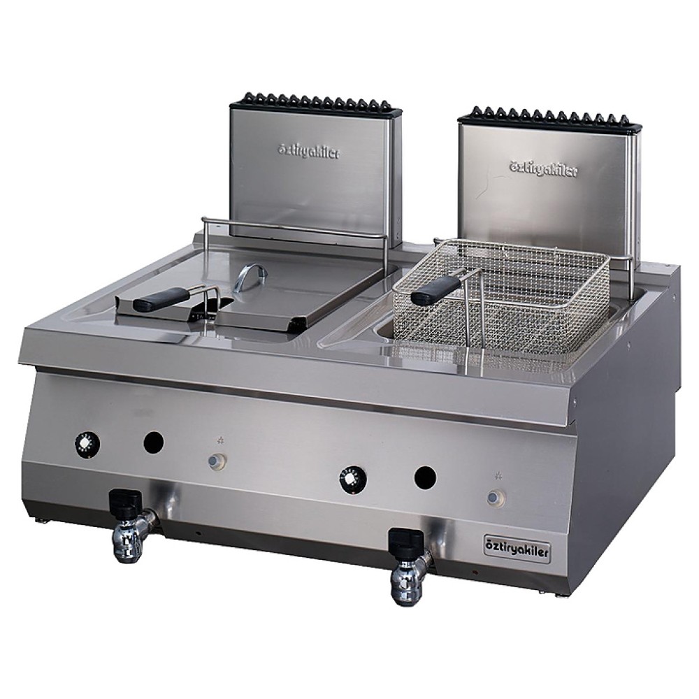 Фритюрница OZTI OFGI 8070 предназначена для приготовления различных продуктов в большом количестве масла на предприятиях общественного питания, а также в производственных цехах, деятельность которых связана с выпуском гастрономических товаров. Корпус выполнен из нержавеющей стали, ванна - из нержавеющей стали AISI 304.