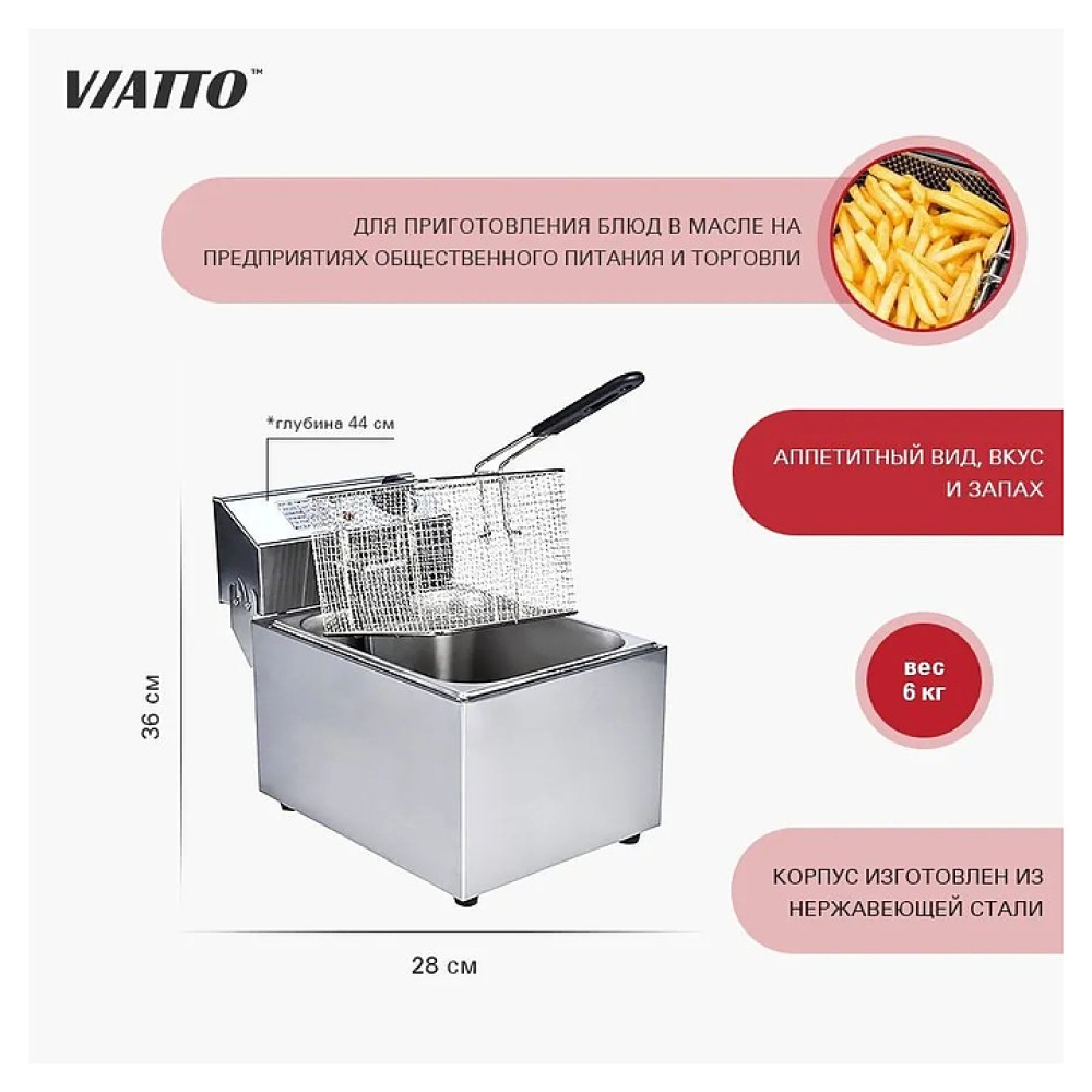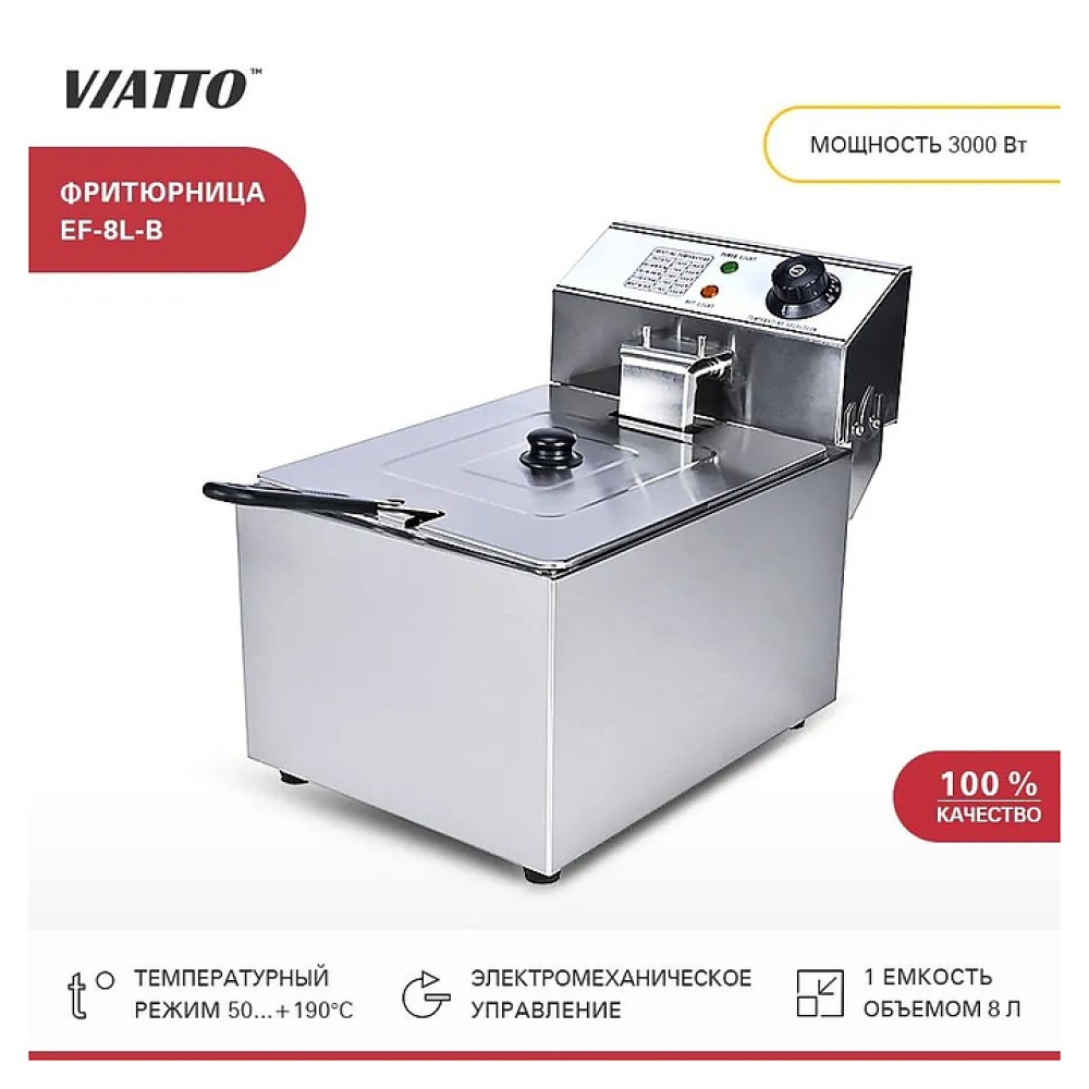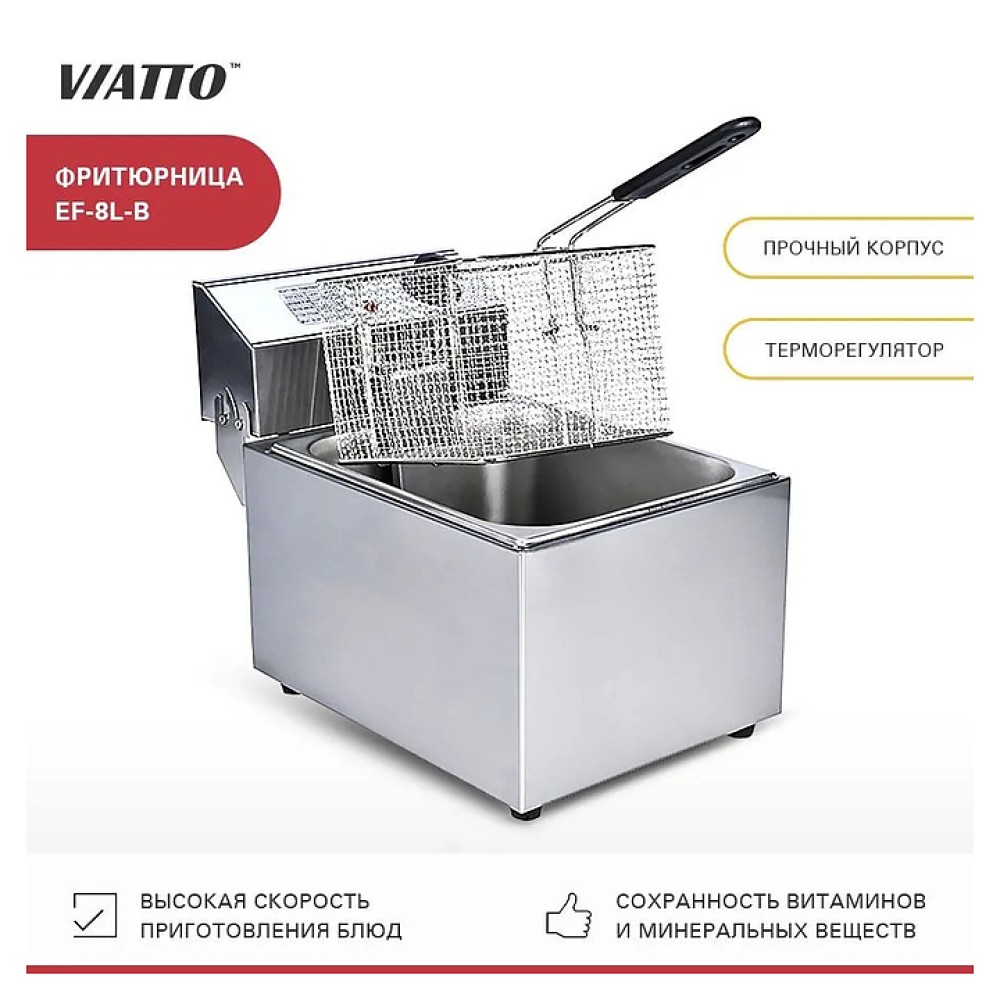 Фритюрница VIATTO EF-8L-B предназначена для приготовления различных продуктов в большом количестве горячего жира или масла на предприятиях общественного питания и торговли. Модель оснащена электромеханическим управлением с терморегулятором.