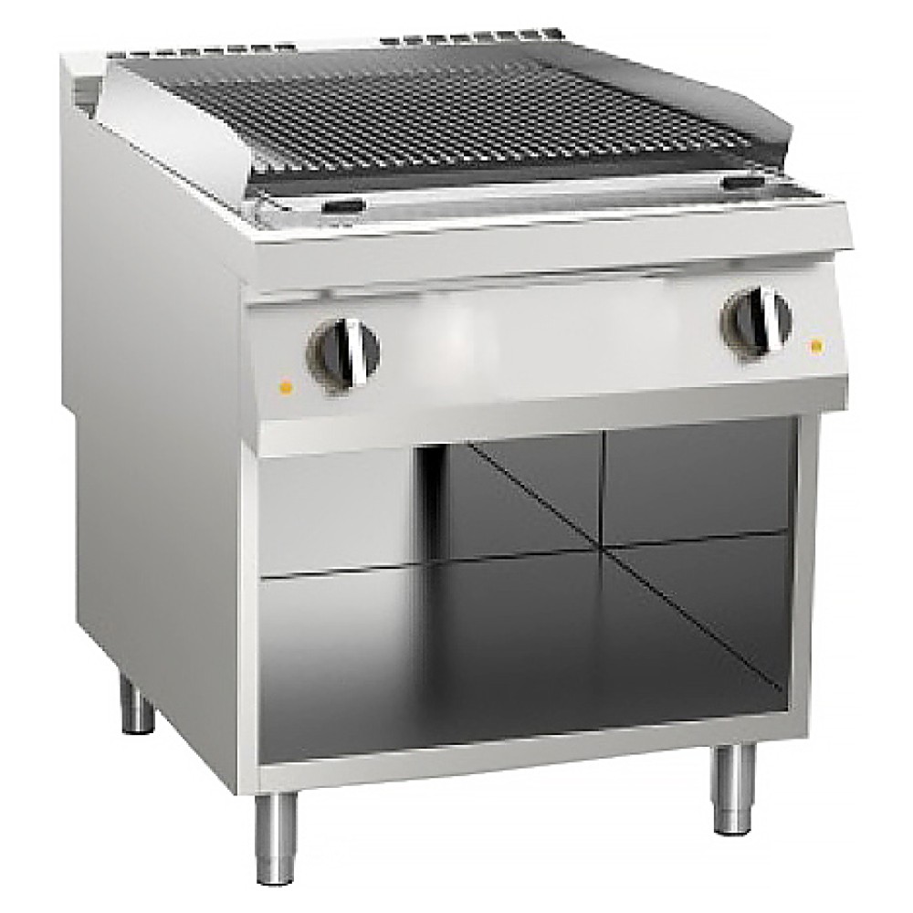 Лавовый гриль Apach Chef Line SLLGG89OS используется в составе тепловой линии 900 или самостоятельно на предприятиях общественного питания и торговли для обжарки мяса, рыбы и овощей. Модель оснащена съемным жиросборником и открытой подставкой с регулируемыми ножками. Корпус выполнен из нержавеющей стали AISI 304, решетки - из чугуна, жиросборник - из нержавеющей стали.