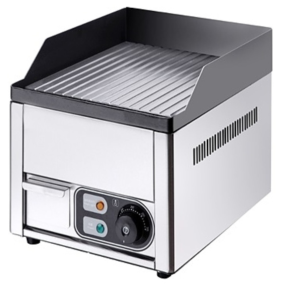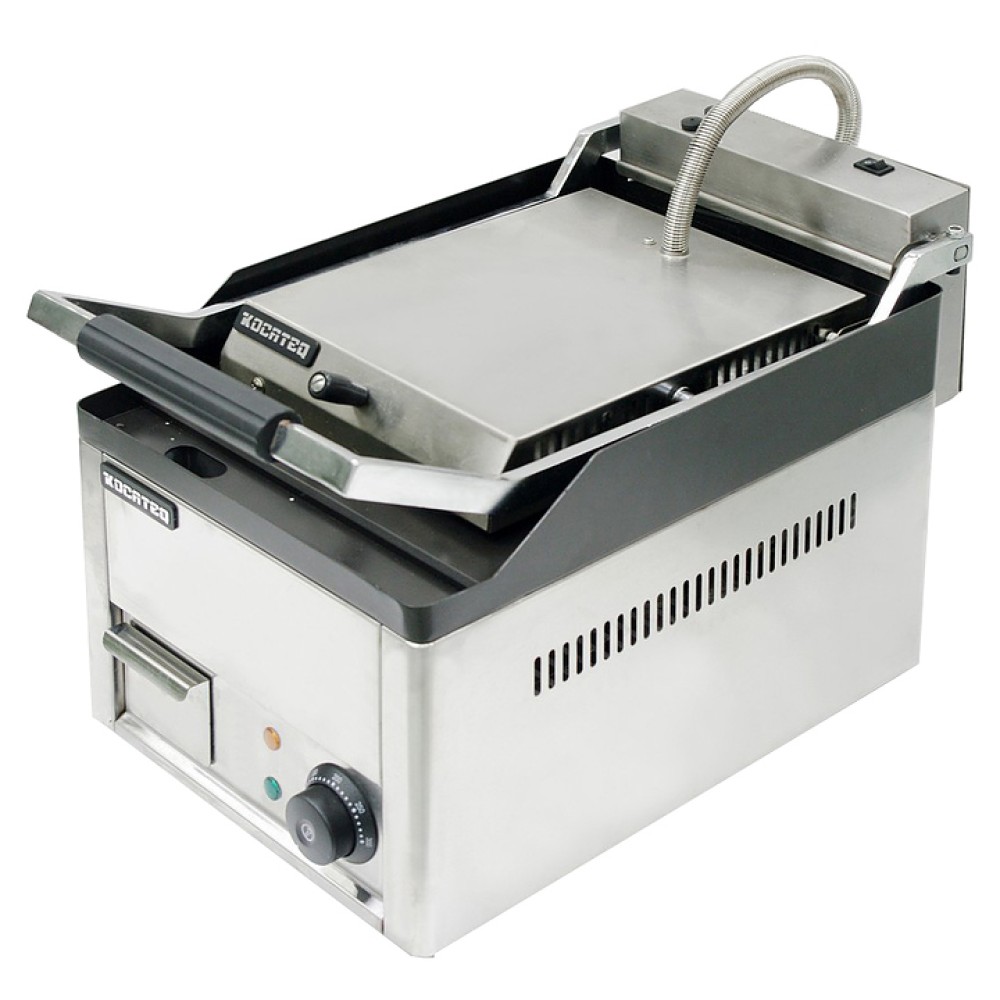 Гриль-сковорода Kocateq GH300FRNW предназначена для приготовления жареных мясных блюд, яичницы, жареной рыбы, оладьев, котлет и гамбургеров на предприятиях общественного питания и торговли. Модель оснащена термостатом для регулировки температуры и защитным термостатом, автоматически отключающим напряжение при повреждении основного термостата. Рабочая поверхность выполнена из стали толщиной 10 мм с тефлонированным покрытием, корпус - из нержавеющей стали AISI 430 толщиной 0,8 мм, ножки - из пластика.