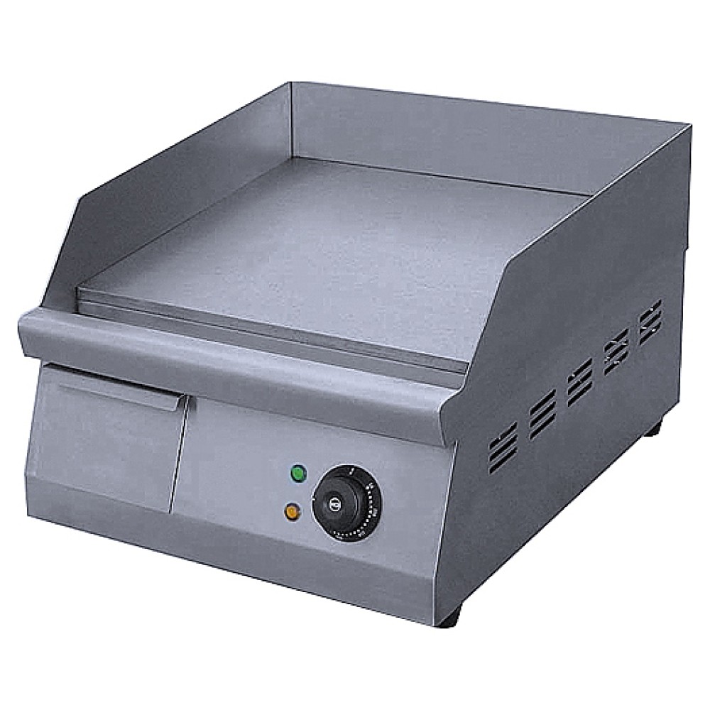 Гриль-сковорода Kocateq GH400 предназначена для приготовления жареных мясных блюд, яичницы, жареной рыбы, оладьев, котлет и гамбургеров на предприятиях общественного питания и торговли. Модель оснащена термостатом для регулировки температуры и защитным термостатом, автоматически отключающим напряжение при повреждении основного термостата. Плоская рабочая поверхность выполнена из специального теплопроводящего сплава, корпус - из нержавеющей стали AISI 304, ножки - из пластика.