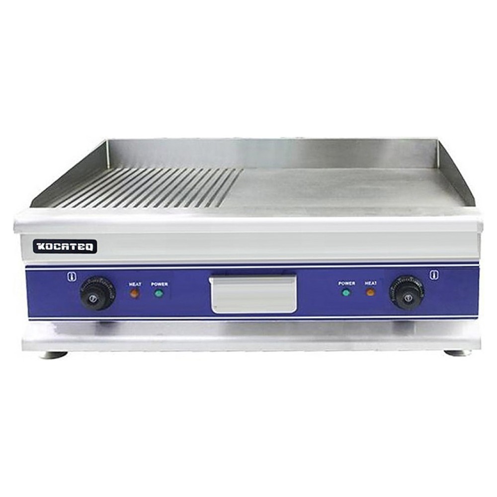 Гриль-сковорода Kocateq GH650 2 предназначена для приготовления жареных мясных блюд, яичницы, жареной рыбы, оладьев, котлет и гамбургеров на предприятиях общественного питания и торговли. Модель оснащена термостатом для регулировки температуры и защитным термостатом, автоматически отключающим напряжение при повреждении основного термостата. Корпус выполнен из нержавеющей стали AISI 201, ножки - из пластика.