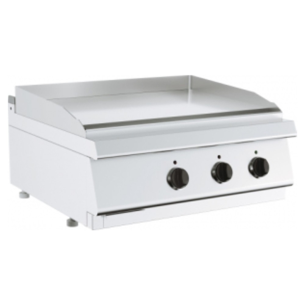 Гриль-сковорода KUSINA G7I 200E-S используется в составе тепловой линии 700S для приготовления жареных мясных блюд, яичницы, жареной рыбы, оладьев, котлет и гамбургеров на предприятиях общественного питания и торговли. Модель оснащена гладкой стальной (ST 52) поверхностью с 2 зонами нагрева, бортиком с 3-х сторон и вместительным жиросборником. Оборудование изготовлено из нержавеющей стали.