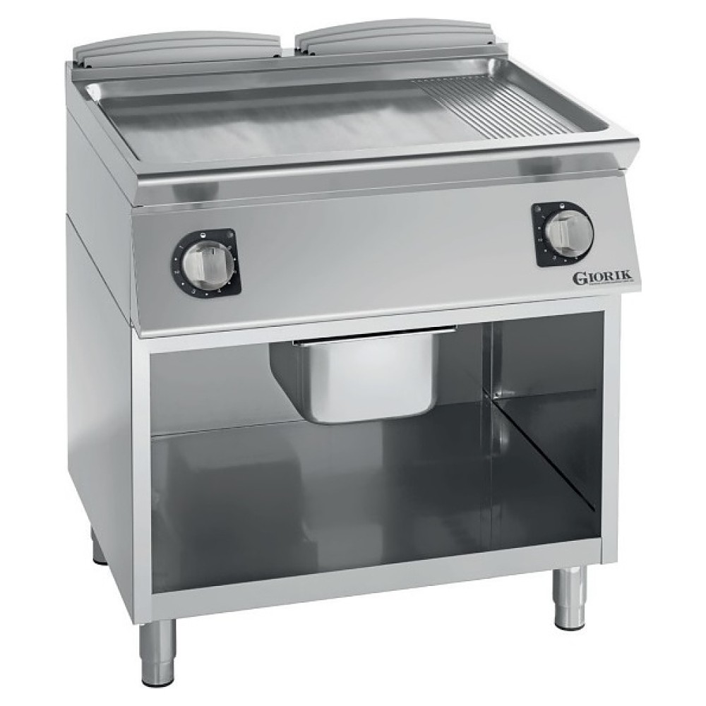 Напольная электрическая жарочная поверхность Giorik Unika 700 FME741GCRX предназначена для жарки мяса, птицы, рыбы, овощей и быстрого разогрева полуфабрикатов на предприятиях общественного питания и торговли. Модель оснащена расположенной на наклонной фронтальной стенке электромеханической панелью управления, 2 независимыми зонами нагрева, сплошной рабочей поверхностью: на 2/3 гладкой и на 1/3 рифленой. Рабочая поверхность и внешняя облицовка корпуса выполнены из высококачественной нержавеющей стали, трубчатые электронагреватели (ТЭНы) – из коррозионостойкого сплава Incoloy.