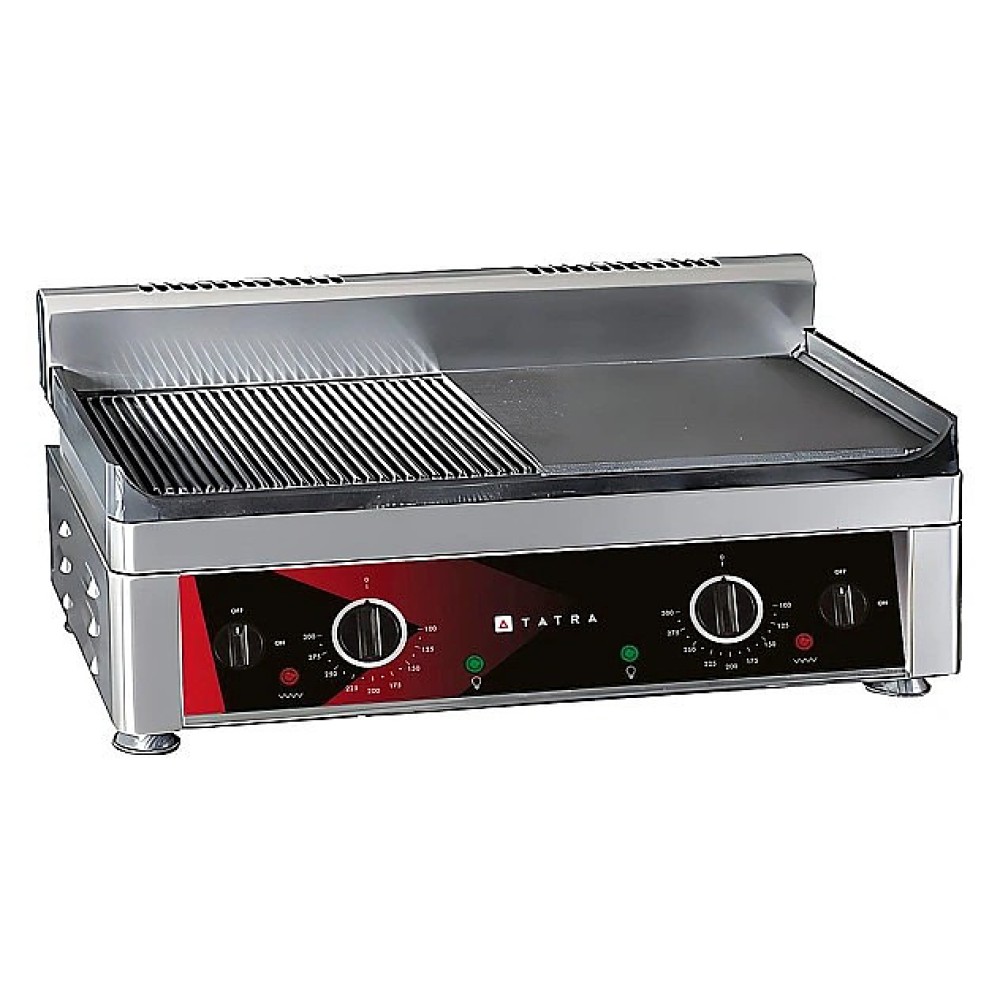 Жарочная поверхность Tatra TGP 5224 R+S предназначена для жарки мяса, птицы, рыбы, овощей и быстрого разогрева полуфабрикатов на предприятиях общественного питания и торговли. Модель оснащена электромеханической панелью управления с терморегулятором и индикаторами питания и нагрева, системой независимого управления каждой зоной нагрева и емкостью для сбора жира. Корпус выполнен из нержавеющей стали.