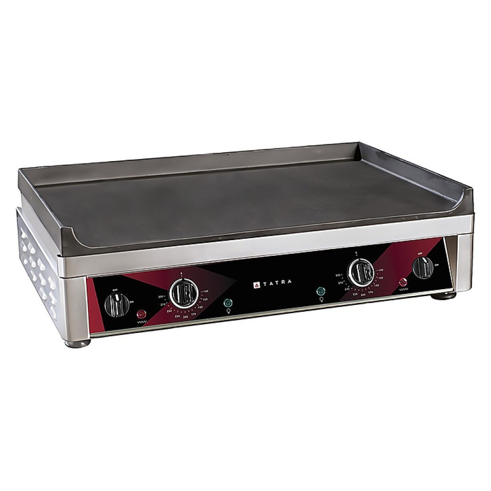 Жарочная поверхность Tatra TGP 6845 S предназначена для жарки мяса, птицы, рыбы, овощей и быстрого разогрева полуфабрикатов на предприятиях общественного питания и торговли. Модель оснащена электромеханической панелью управления с терморегулятором и индикаторами питания и нагрева, системой независимого управления каждой зоной нагрева и емкостью для сбора жира. Корпус выполнен из нержавеющей стали.