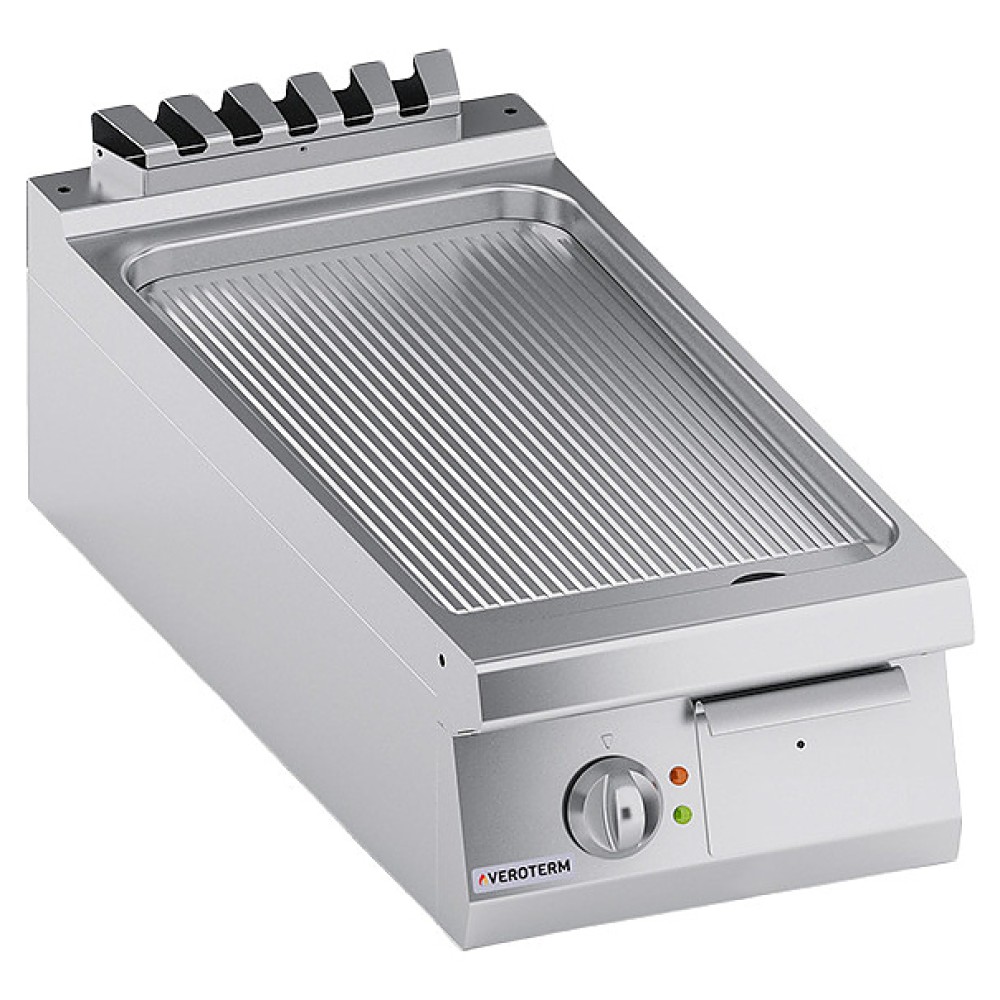 Настольная жарочная поверхность VEROTERM VT4FBEP05TTR используется на предприятиях общественного питания и торговли для приготовления широкого ассортимента блюд. Модель оснащена рифленой рабочей поверхностью и электромеханической панелью управления. Корпус выполнен из нержавеющей стали AISI 430, рабочая поверхность – из жаропрочной конструкционной стали.