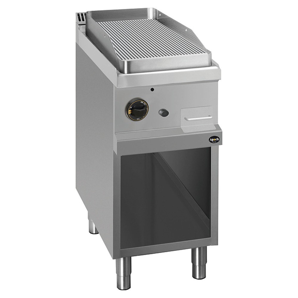 Открытая газовая сковорода Apach APTG-47PR/PL 700-й серии предназначена для обжарки мяса, рыбы и овощей на предприятиях общественного питания и торговли. Модель с закругленными краями и бортами оснащена электромеханической панелью управления с терморегулятором, горелкой с пьезоэлектрическим поджигом и системой стабилизации пламени, выдвижным лотком для сбора остатков пищи, масла и жира и открытой подставкой с регулируемыми по высоте ножками.