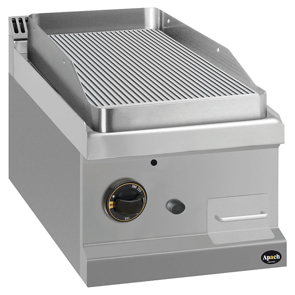 Открытая газовая сковорода Apach APTG-47TL 700-й серии предназначена для обжарки мяса, рыбы и овощей на предприятиях общественного питания и торговли. Модель с закругленными краями и бортами оснащена электромеханической панелью управления с терморегулятором, горелкой с пьезоэлектрическим поджигом и системой стабилизации пламени и выдвижным лотком для сбора остатков пищи, масла и жира. Корпус, панель управления и вытяжная решетка выполнены из нержавеющей стали AISI 304, боковые и задняя панели - из нержавеющей стали AISI 430, лоток и горелка - из нержавеющей стали. рабочая поверхность – из конструкционной стали.