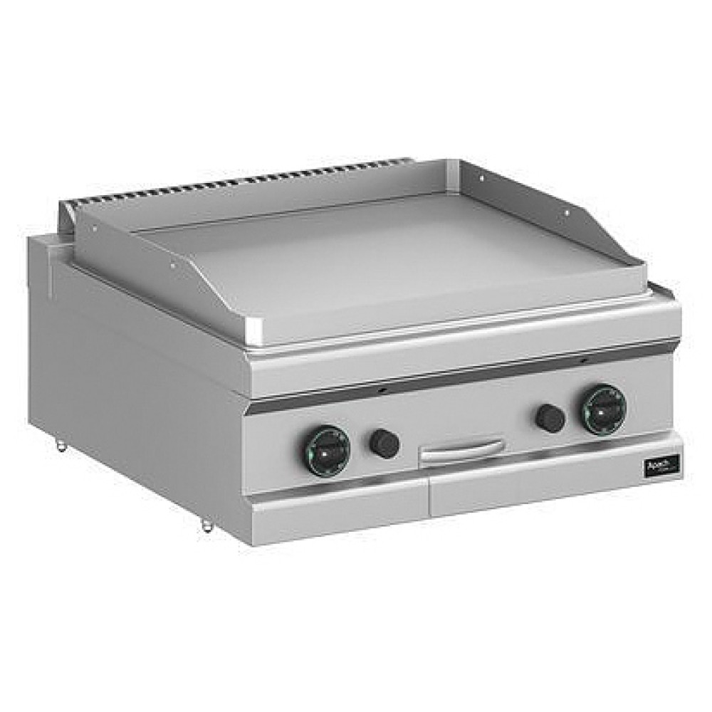 Открытая газовая сковорода Apach APTG-77TL/PL 700-й серии предназначена для обжарки мяса, рыбы и овощей на предприятиях общественного питания и торговли. Модель с закругленными краями и бортами оснащена электромеханической панелью управления с 2 терморегуляторами, горелками с пьезоэлектрическим поджигом и системой стабилизации пламени и выдвижным лотком для сбора остатков пищи, масла и жира. Корпус, панель управления и вытяжная решетка выполнены из нержавеющей стали AISI 304, рабочая поверхность - из конструкционной стали, боковые и задняя панели - из нержавеющей стали AISI 430, лоток и горелка - из нержавеющей стали.