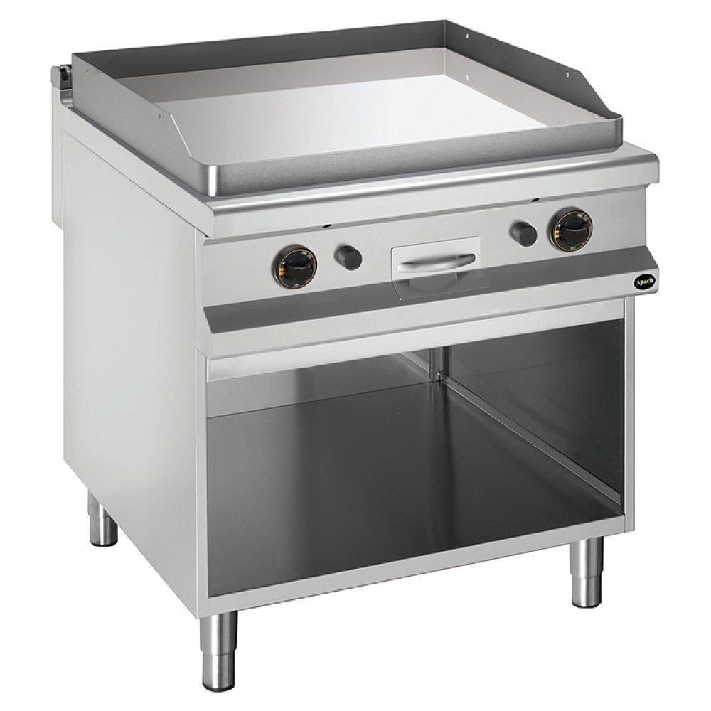 Открытая газовая сковорода Apach APTG-89PLC/PL 900-й серии предназначена для обжарки мяса, рыбы и овощей на предприятиях общественного питания и торговли. Модель с закругленными краями и бортами оснащена электромеханической панелью управления с 2 терморегуляторами, горелками с пьезоэлектрическим поджигом и системой стабилизации пламени, выдвижным лотком для сбора остатков пищи, масла и жира и открытой подставкой с регулируемыми по высоте ножками.
