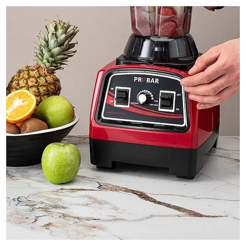Стационарный блендер Probar CB-986 предназначен для измельчения пищевых продуктов и приготовления муссов, смузи, фраппе, соусов, коктейлей, фруктовых и овощных пюре на предприятиях общественного питания и торговли. Модель оснащена электромеханической панелью управления. Корпус выполнен из пластика в комбинации красного и черного цветов, кувшин, загрузочная горловина и мерная крышка – из прочного прозрачного полимера, ножи – из нержавеющей стали.