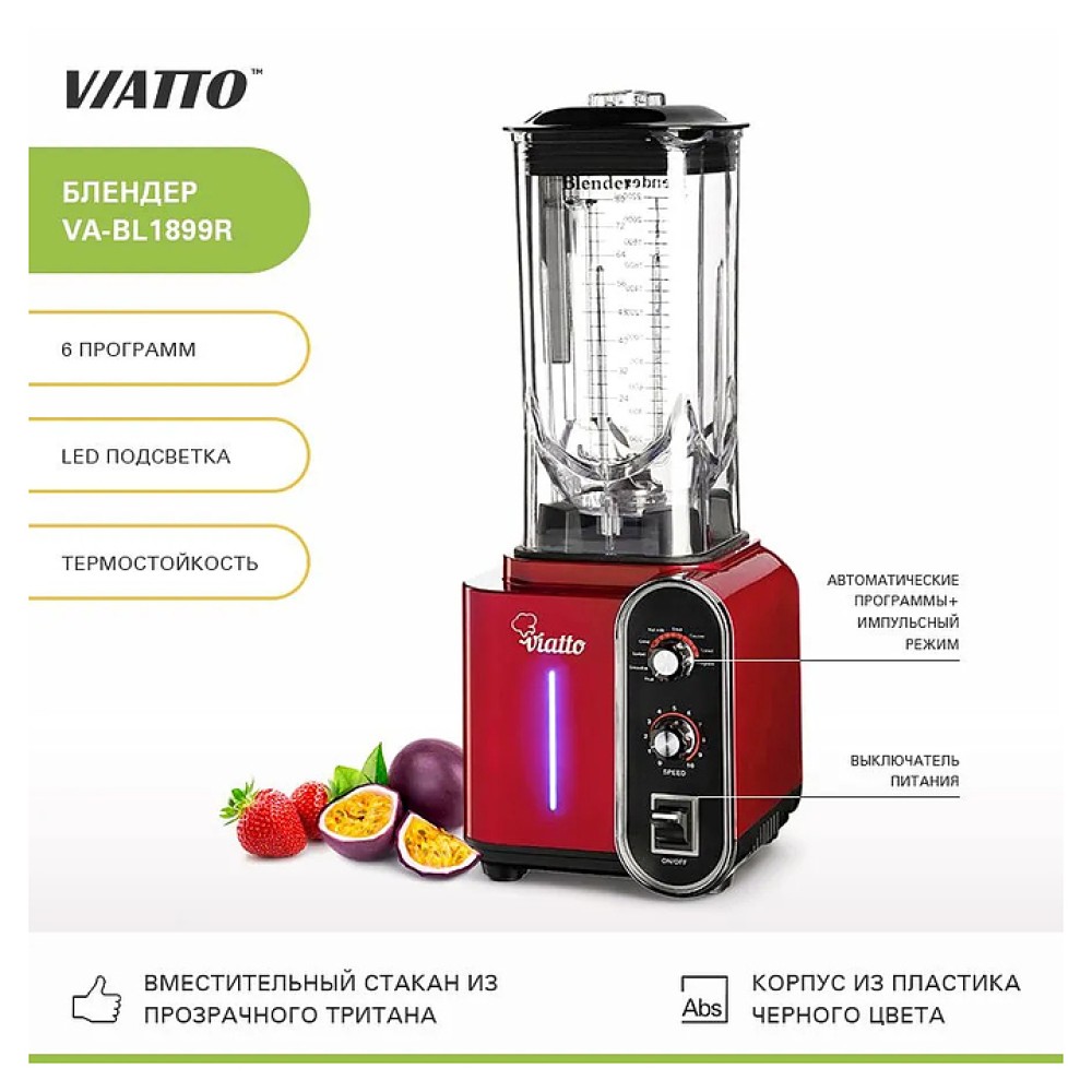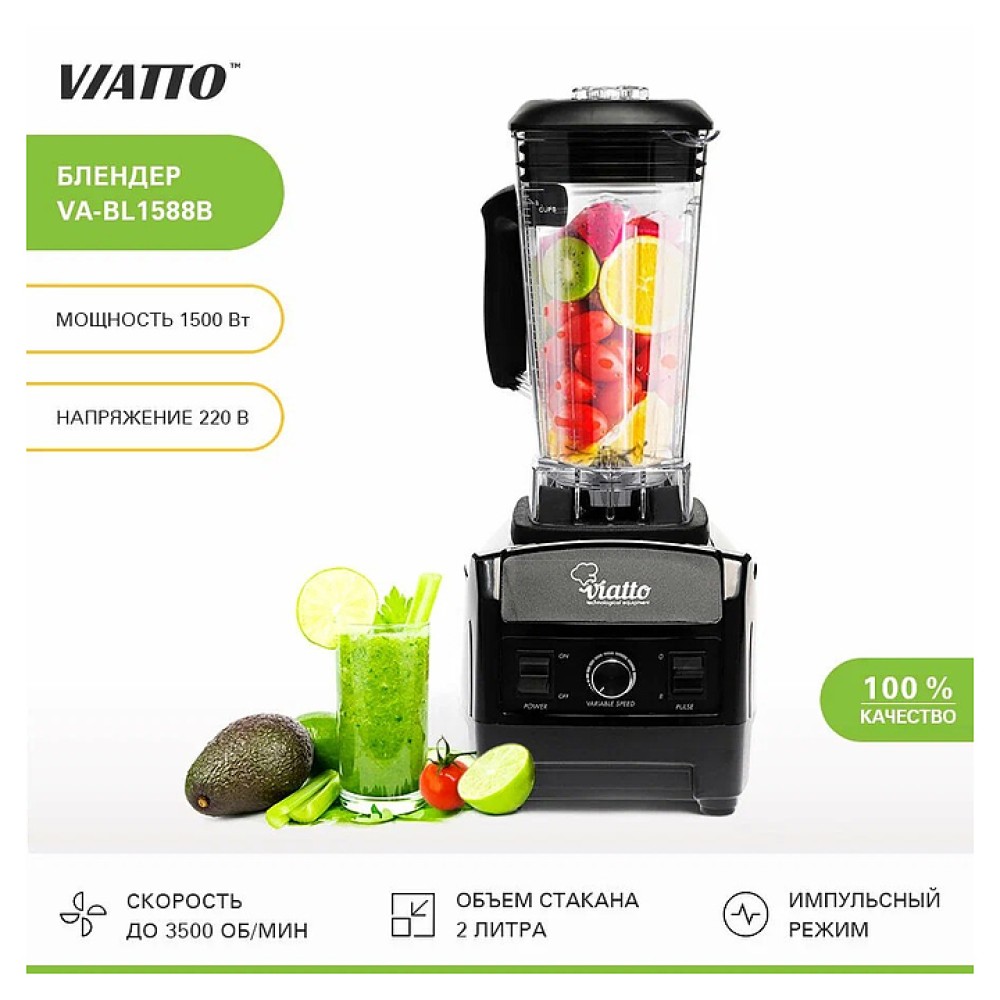 Блендер VIATTO VA-BL1588B предназначен для измельчения продуктов и приготовления различных коктейлей, смузи, фраппе, соусов, фруктовых и овощных пюре и муссов на предприятиях общественного питания и торговли. Модель оснащена механической панелью управления с вариатором скорости. Корпус выполнен из пластика черного цвета, стакан - из прозрачного тритана.
