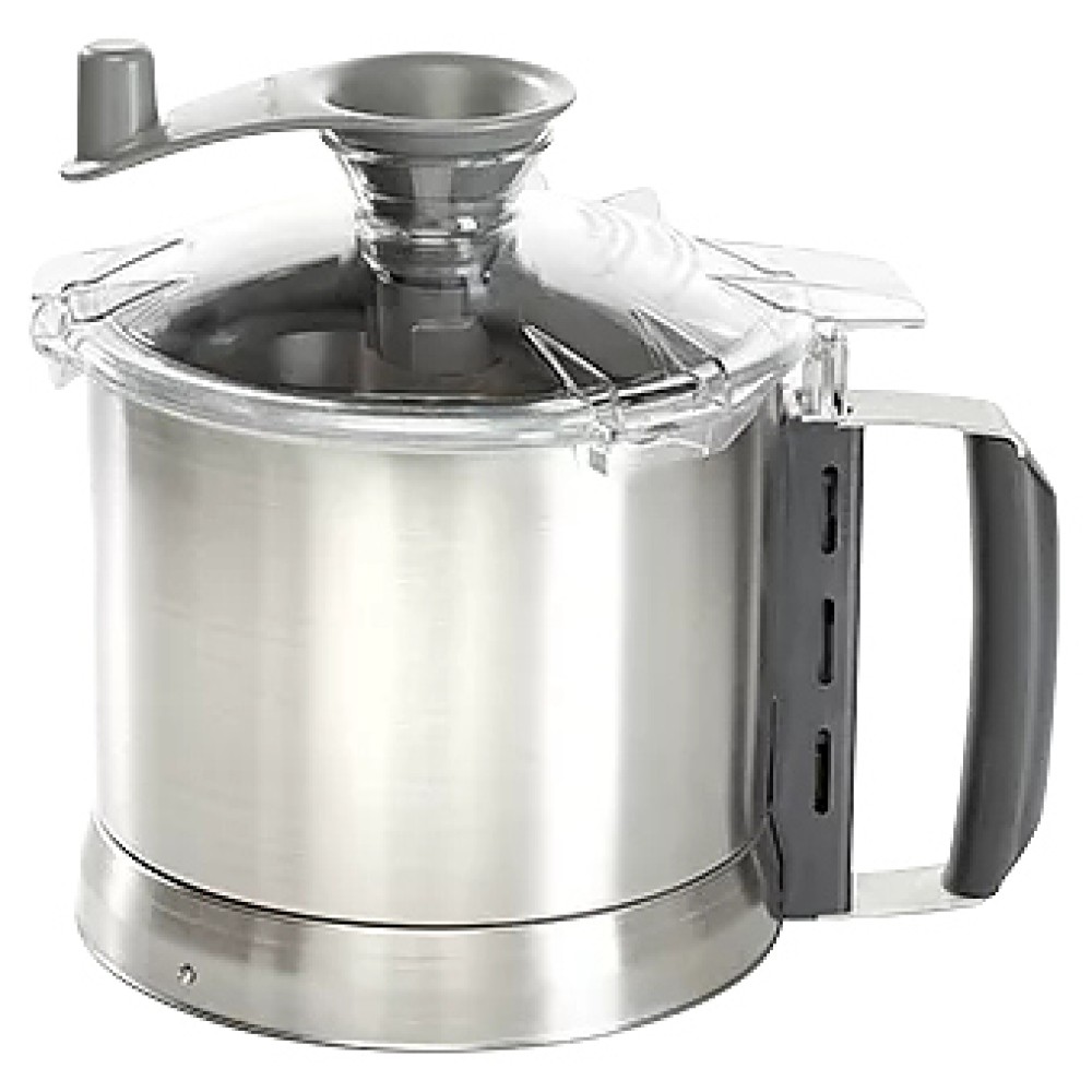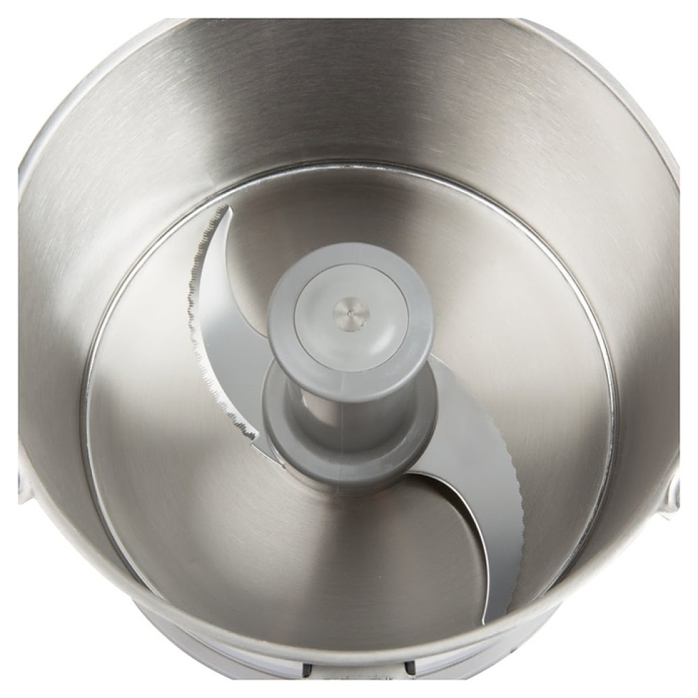 В комплект поставки входят чаша 3,7 л из нержавеющей стали и нож с мелкими зубчиками со съемным колпачком и инструмент для очистки ножа.