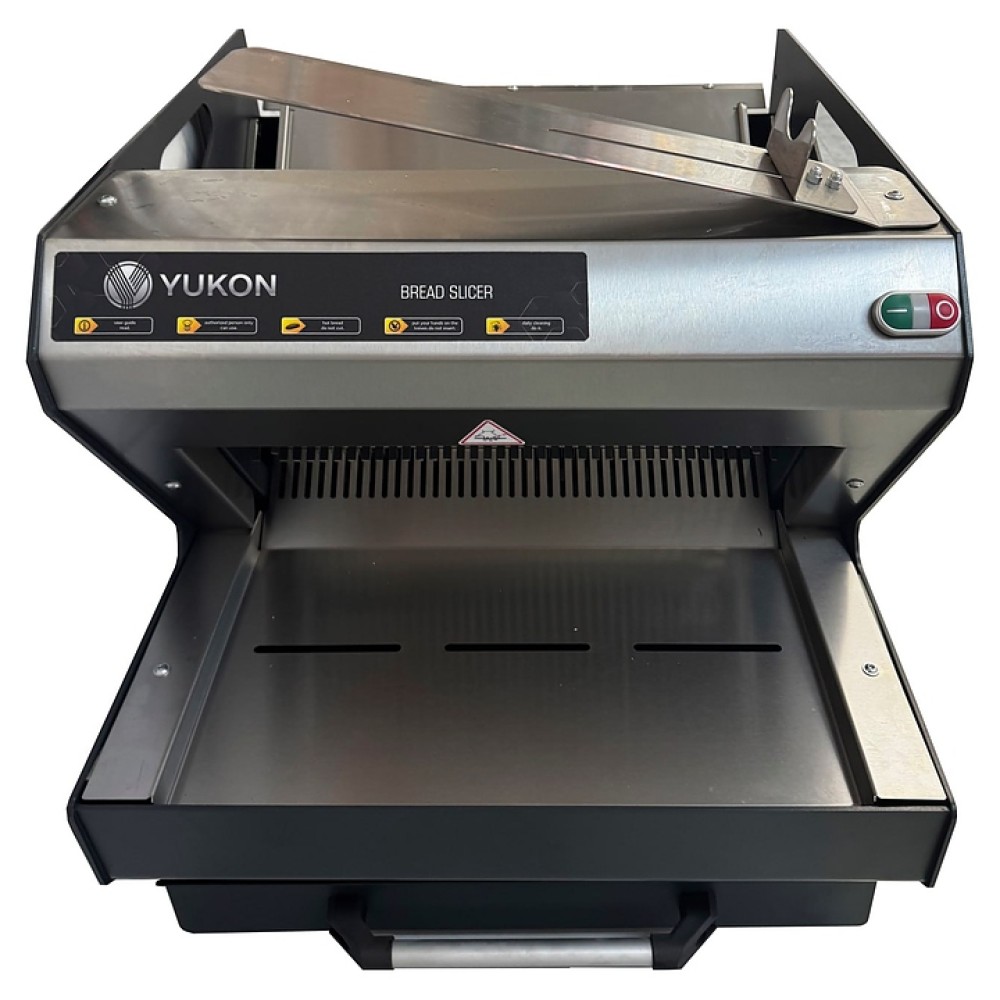 Настольная хлеборезка Yukon PGM 05 предназначена для нарезки формового хлеба на равные ломтики на предприятиях общественного питания и торговли. Модель оснащена проточными полотнами с электроприводом и автоматическим механизмом нарезки. Соприкасающиеся с продуктом компоненты выполнены из нержавеющей стали.