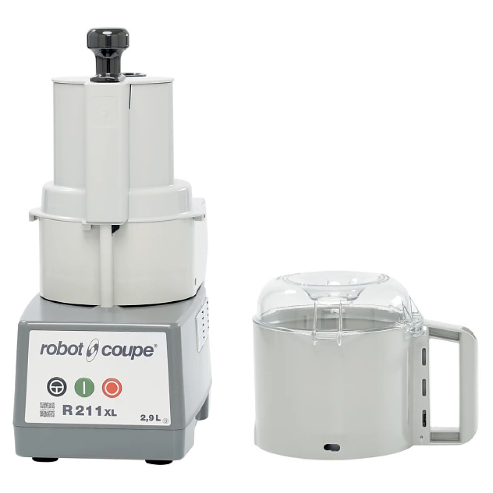 Кухонный процессор (куттер-овощерезка) Robot Coupe R 211 XL предназначен для измельчения сухарей, орехов и шоколада, для натирания сыра и нарезки фруктов, овощей и мяса на предприятиях общепита и профессиональных кухнях. Чаша выполнена из композитного материала, корпус моторного отсека - из светло-серого поликарбоната, диск-сбрасыватель - из ABS пластика, вал двигателя - из нержавеющей стали.