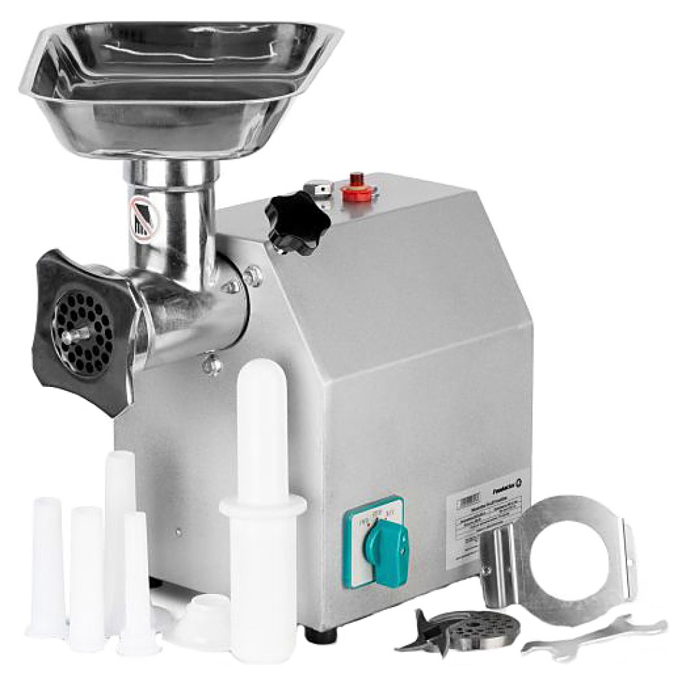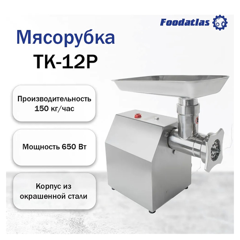 Мясорубка Foodatlas TK-12P используется на предприятиях общественного питания и торговли для измельчения мяса и рыбы при производстве фарша. Корпус выполнен из окрашенной стали, бункер - из нержавеющей стали 202, шнек - из стали HT200, ножи - из стали 420.