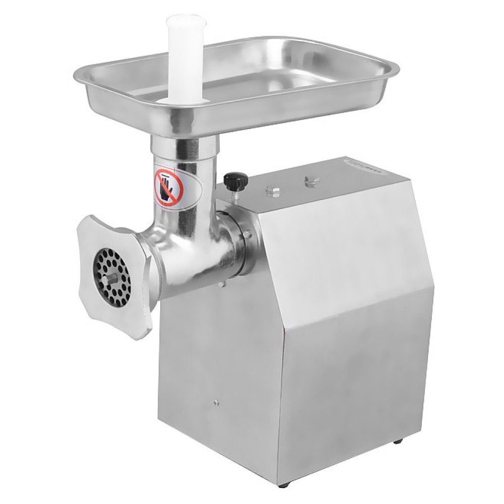 Электрическая мясорубка Hualian TТ-12 реверс предназначена для приготовления мясного и рыбного фаршей, а также измельчения различных овощей, фруктов и ягод в мясных цехах, магазинах мясной продукции, ресторанах, кафе, а также для домашнего использования. Модель оснащена загрузочным лотком с увеличенными бортами для удобства загрузки и улучшения гигиены, толкатель гарантирует безопасную работу оператора. Корпус и все элементы, соприкасающиеся с продуктами, выполнены из хромированного сплава.