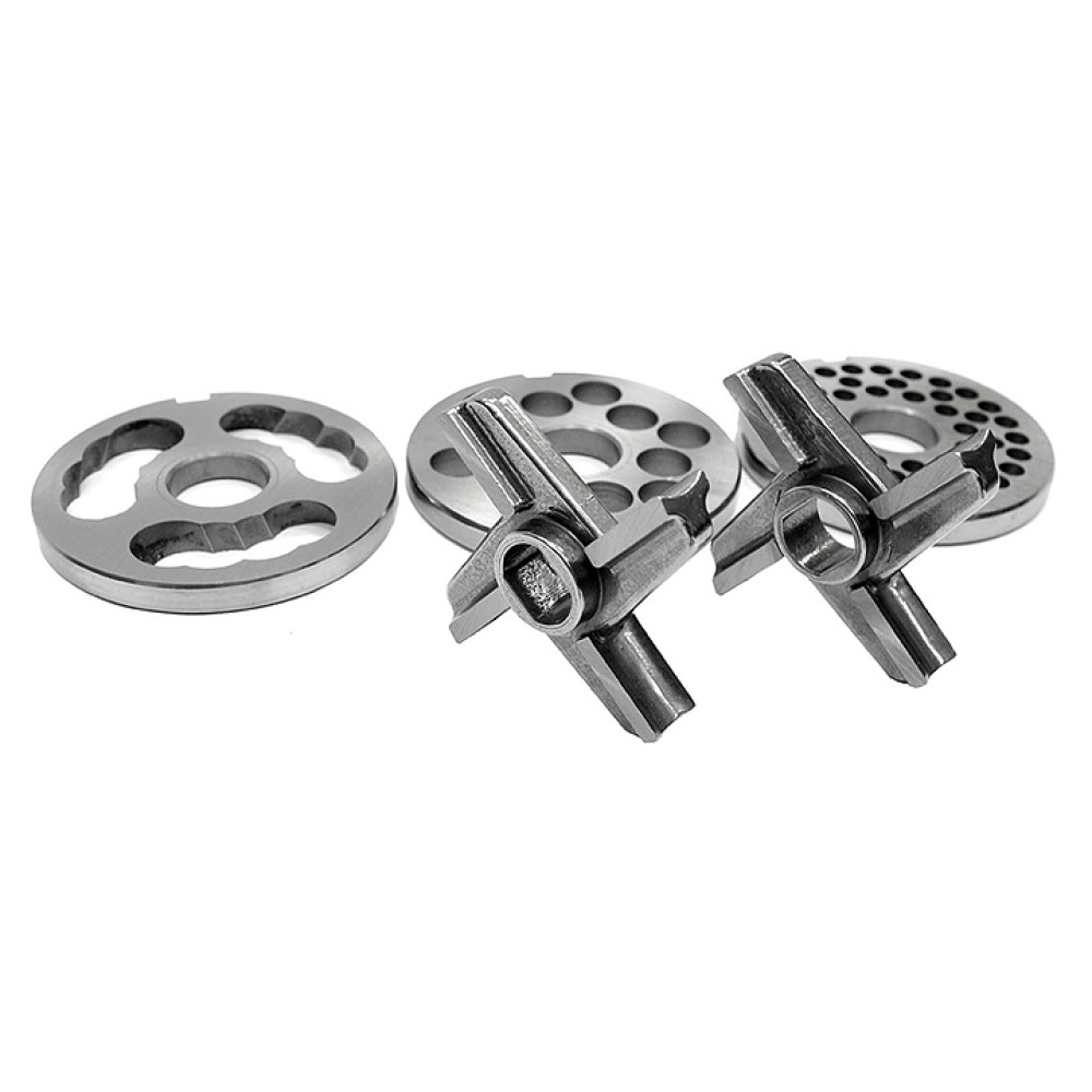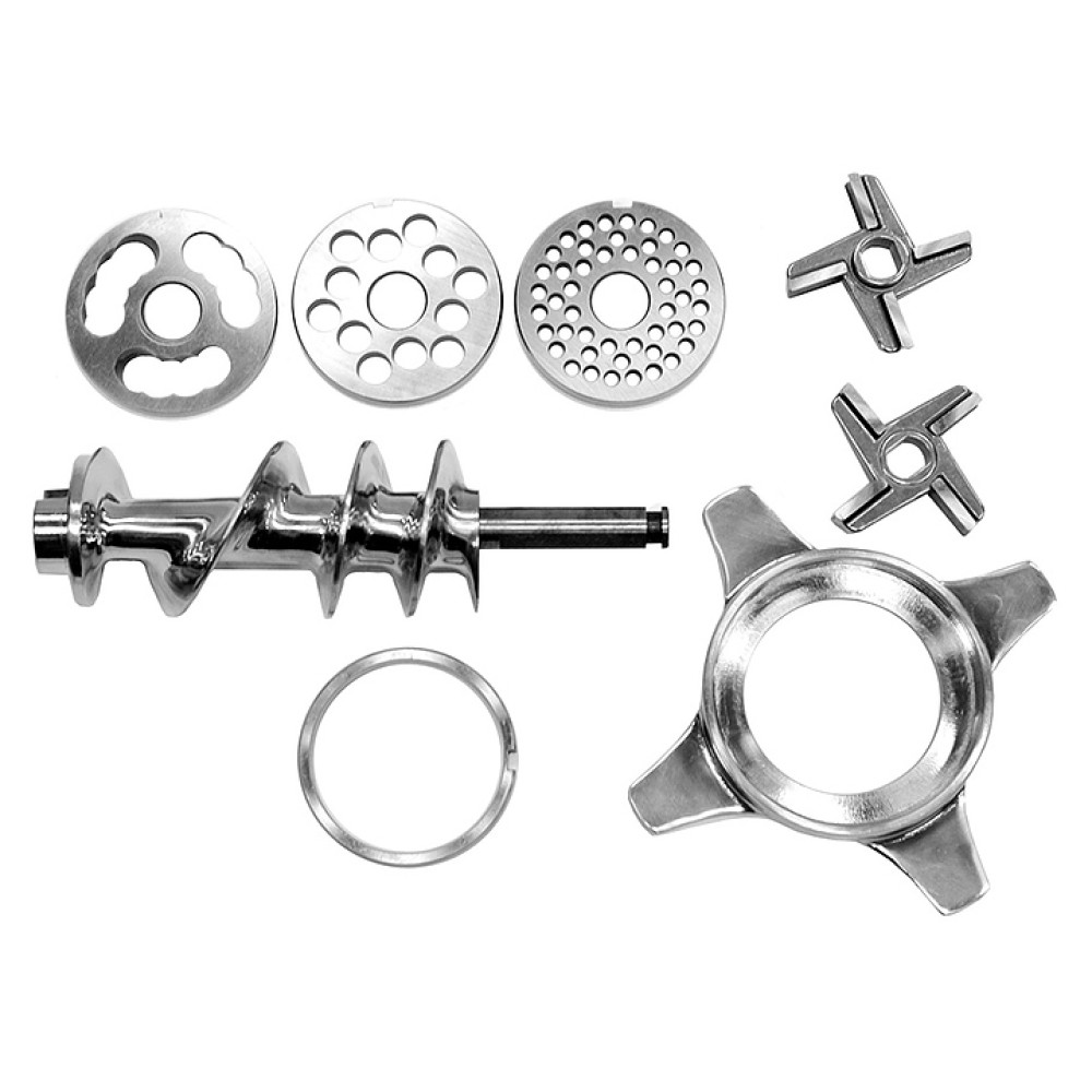 Мясорубка Kocateq GHM32I предназначена для измельчения мяса и рыбы на фарш, повторного измельчения котлетной массы и набивки колбас на предприятиях общественного питания и торговли. Корпус выполнен из нержавеющей стали AISI 201, шнек и хобот - из нержавеющей стали AISI 202, ножи - из легированной инструментальной стали, толкатель - из пластика.