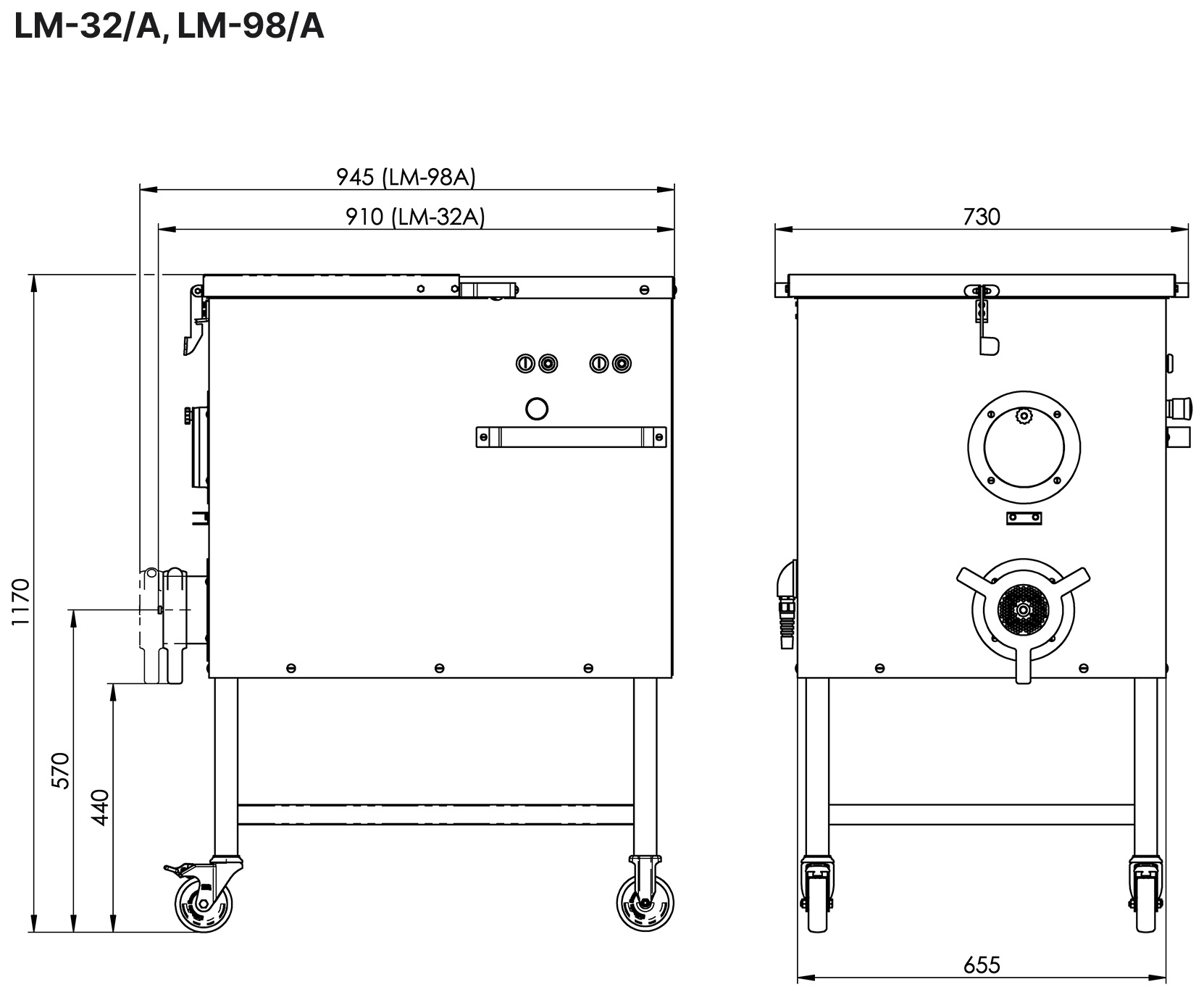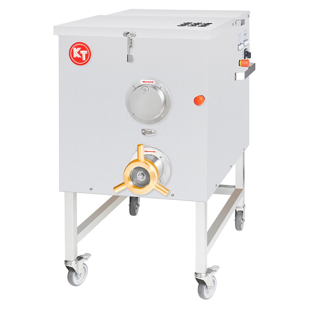 Мясорубка Koneteollisuus Oy (KT) LM-98/А предназначена для измельчения мяса и рыбы на фарш, повторного измельчения котлетной массы и набивки колбас на предприятиях пищевой промышленности и торговли. Модель оснащена 2 двигателями: для измельчения и для смешивания, равномерным ходом и низким уровнем шума при работе. Корпус и бункер для мяса выполнены из нержавеющей стали, горловина - из чугуна, шнек - из алюминия, решетки - из нержавеющей стали, ножи - из прочной хромванадиевой стали 58CrV4.