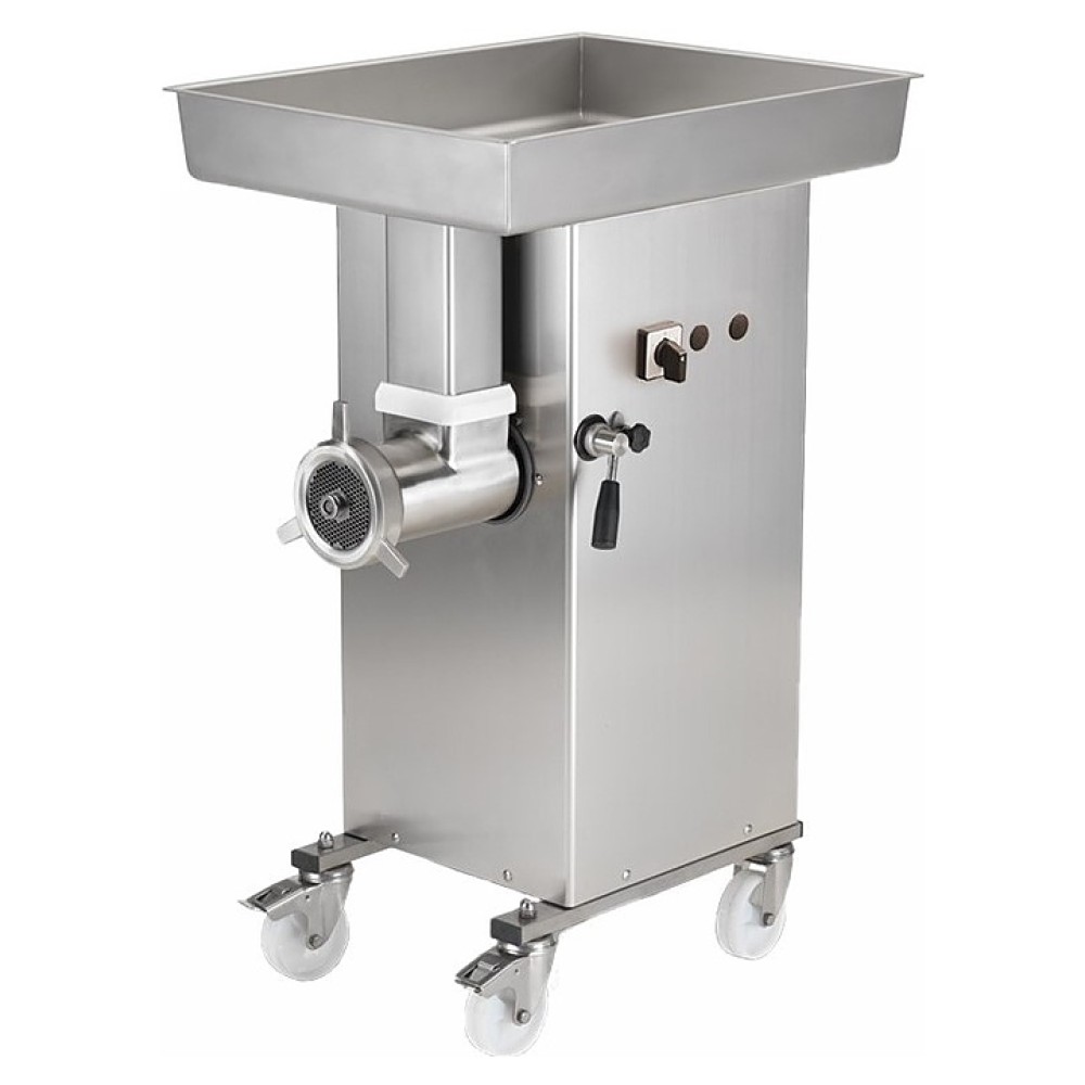 Напольная мясорубка Minerva C/E 660F Unger S5 380 В используется на предприятиях общественного питания и торговли для приготовления мясного и рыбного фарша и колбасных изделий. Модель оснащена тремя самозатачивающимися решетками, двумя ножами, двумя кольцами, опорами корпуса и колесами с тормозом. Корпус, сменный приёмный бункер с большой горловиной, решетка и нож выполнены из нержавеющей стали, внешняя горловина шнека - из нержавеющей стали AISI 304.