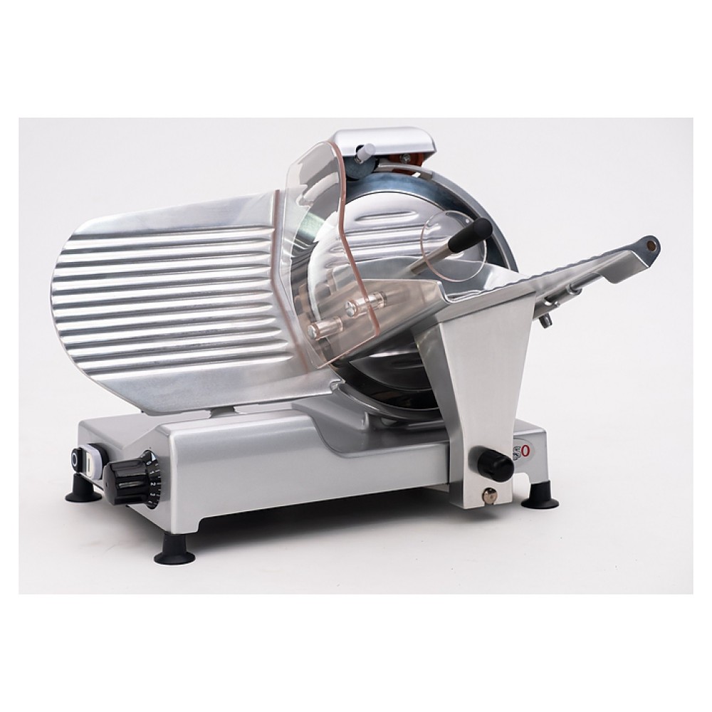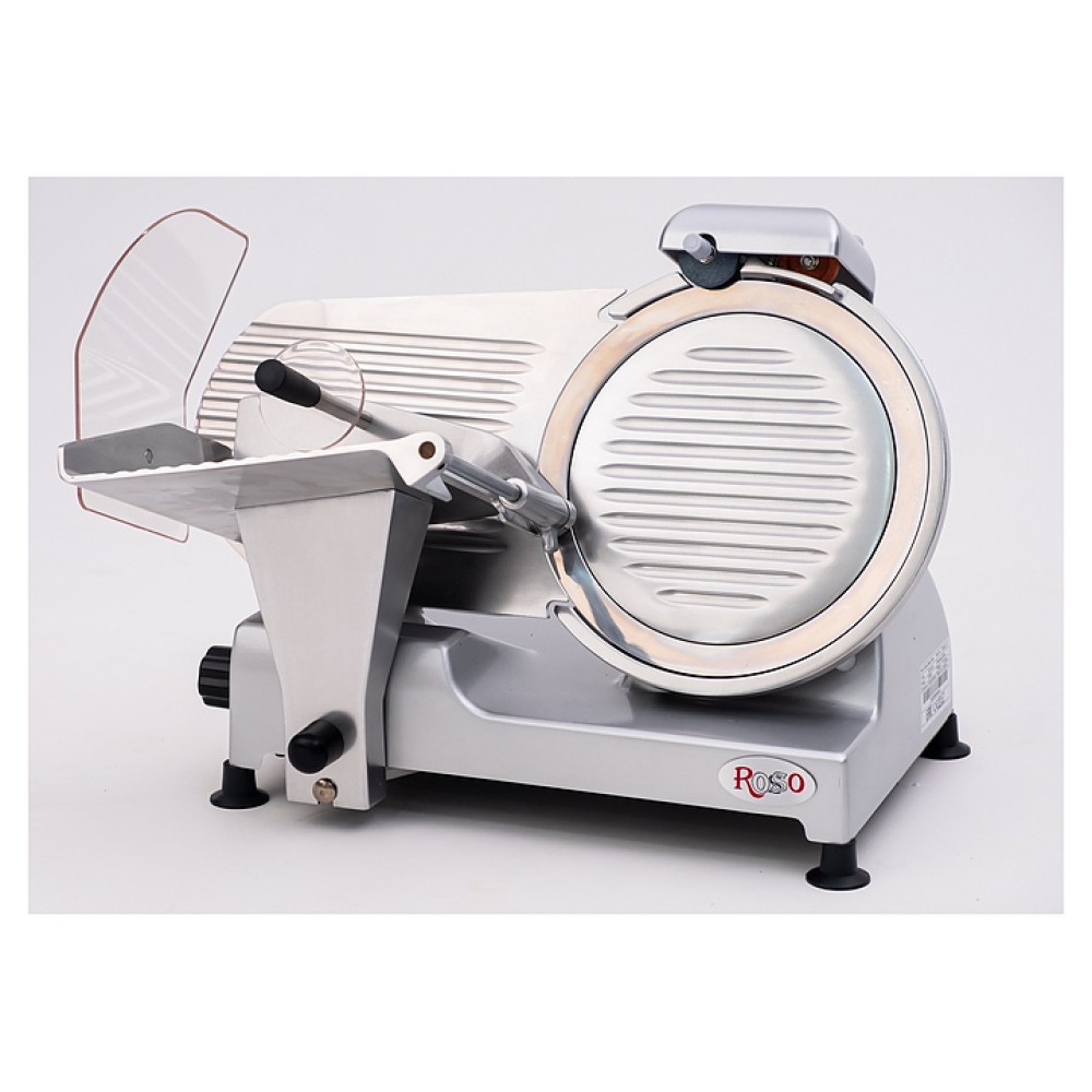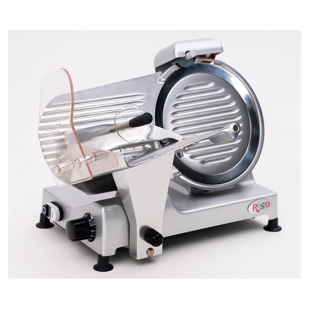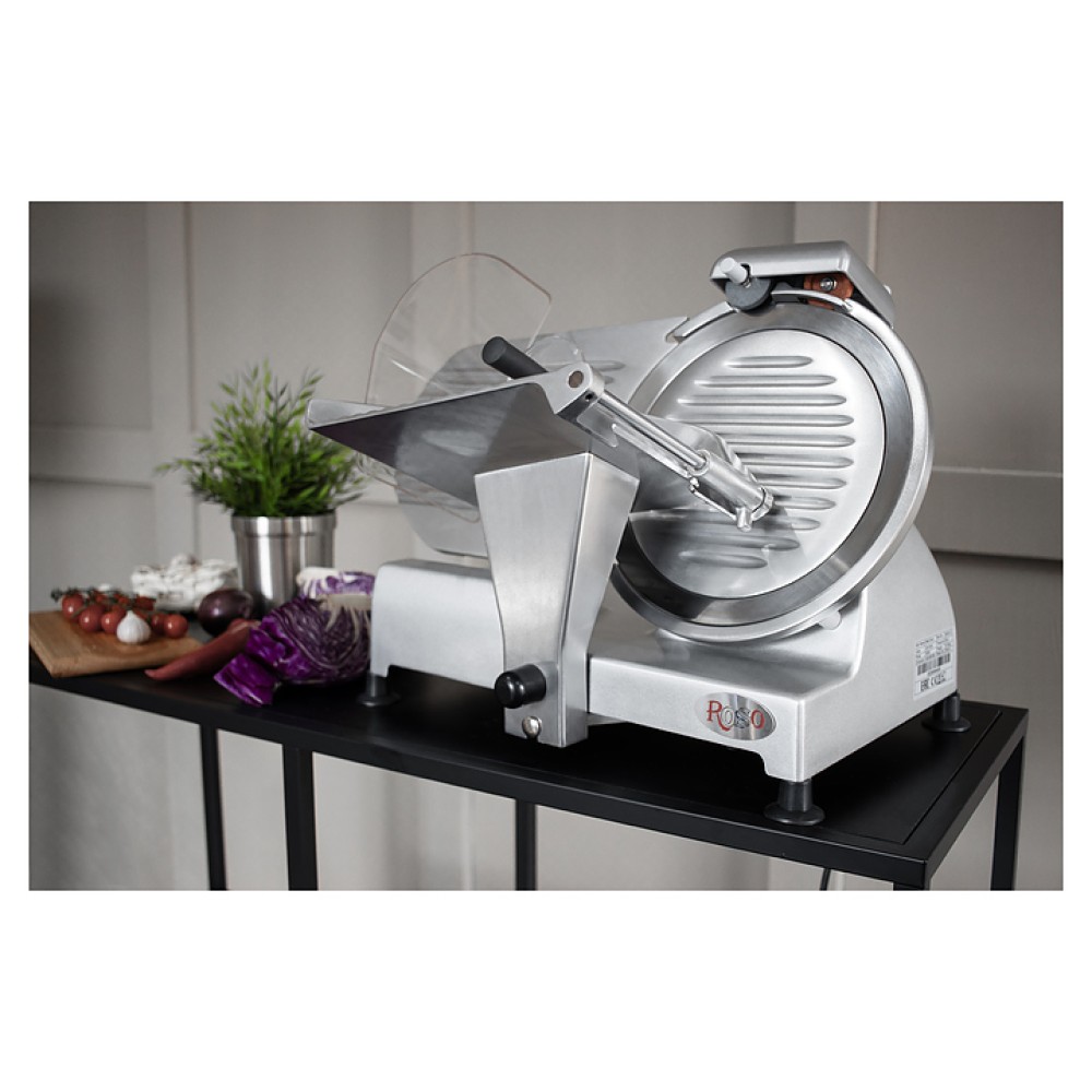 Слайсер Rosso 220ES-8 предназначен для нарезки продуктов на ломтики заданной толщины на предприятиях общественного питания и торговли. Модель оснащена прижимным устройством, защитным кожухом и литым основанием. Корпус выполнен из нержавеющей стали.