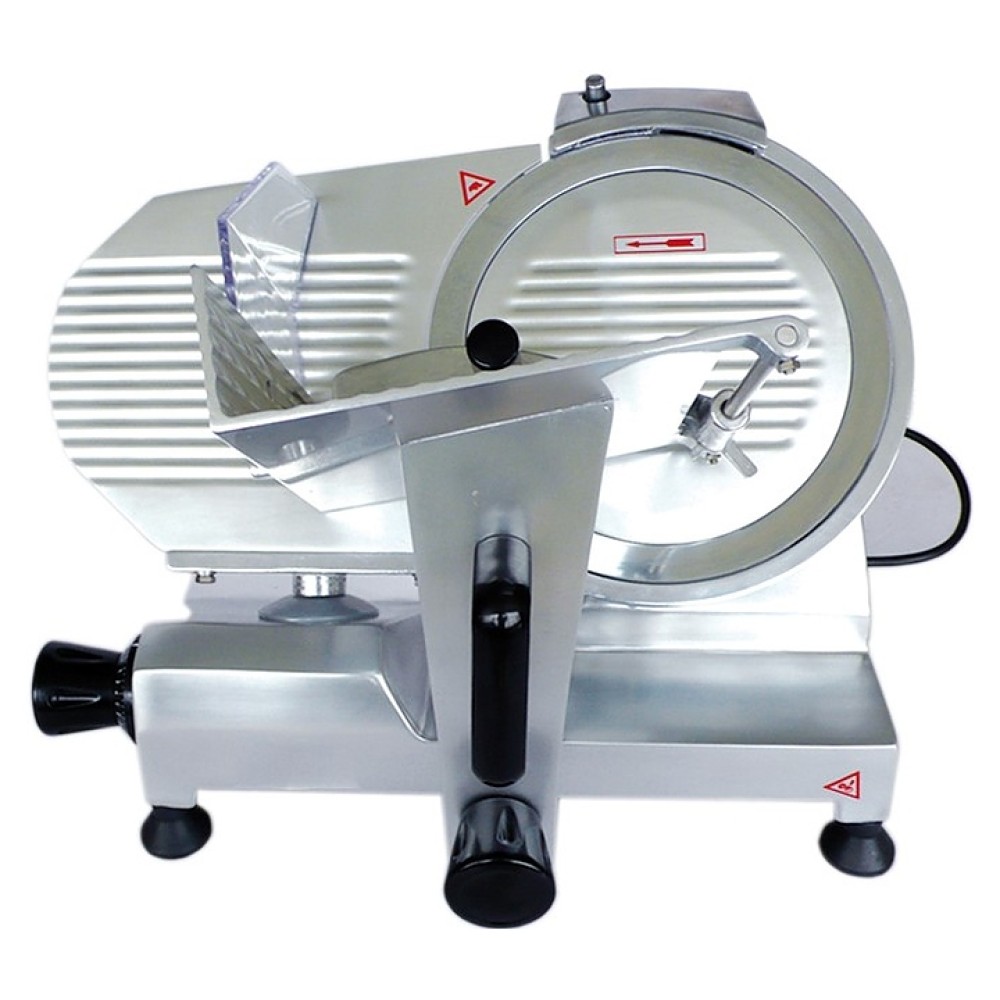 Слайсер VIATTO HBS-250 предназначен для нарезки тонкими одинаковыми ломтиками приготовленного мяса, колбасных изделий, сыра и овощей на предприятиях общественного питания и торговли. Модель оснащена затачивающим устройством. Корпус выполнен из алюминиево-магниевого сплава.