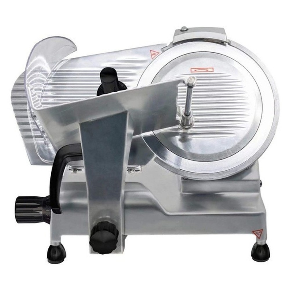 Полуавтоматический слайсер VIATTO VA-220 используется на предприятиях общественного питания и торговли для нарезки мяса, сыра, колбасных изделий и других пищевых продуктов на ровные и равные ломтики. Модель оснащена съемным затачивающим устройством, механизмом регулировки толщины нарезки и устойчивыми нескользящими опорами. Корпус выполнен из алюминия.