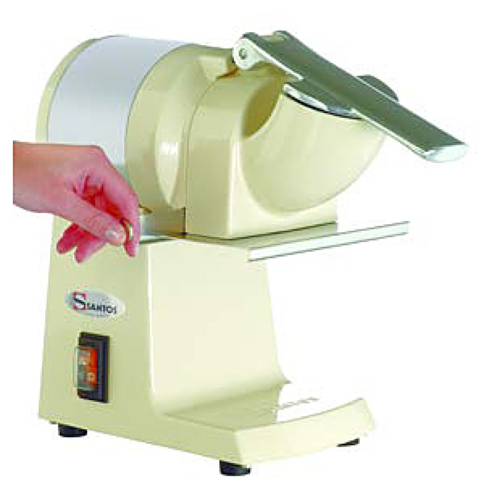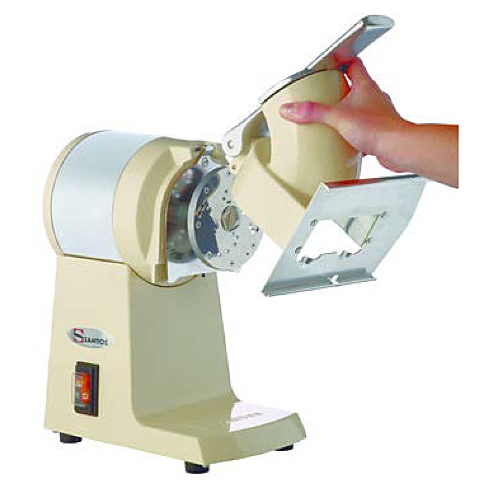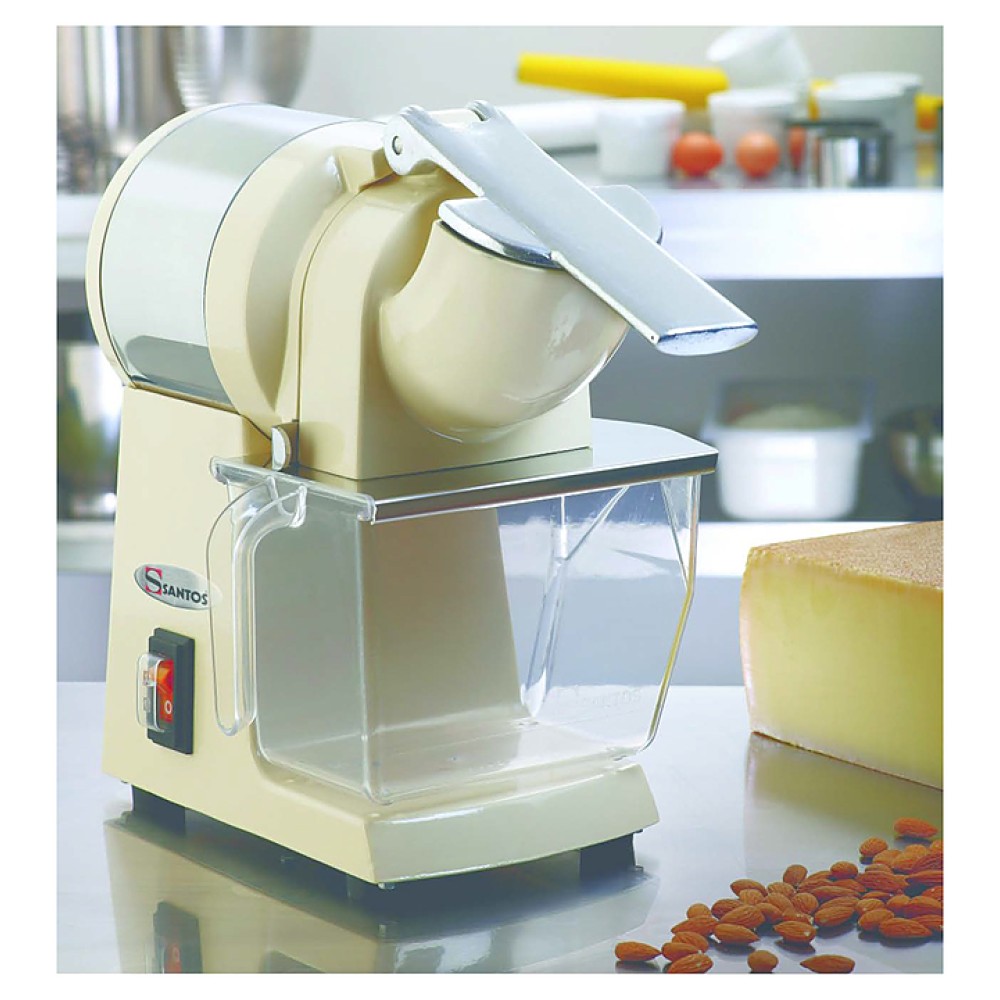 Сыротерка Santos серия 02 используется на предприятиях общественного питания и торговли для натирания сыра, шоколада, сушенных фруктов и арахиса. Модель оснащена асинхронным двигателем с прерывателем цепи. Кожух из литого алюминия и нержавеющей стали легко снимается: необходимо разблокировать кожух, а затем снять без использования специальных инструментов для полной очистки.