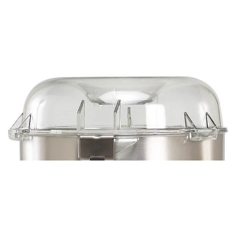 В комплект поставки входит чаша с крышкой 3,7 л, нож с 2 гладкими лезвиями из нержавеющей стали со съёмным колпачком для очистки.