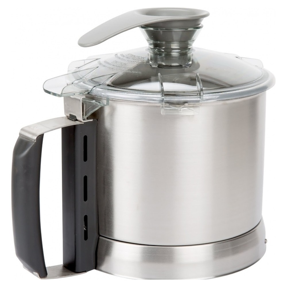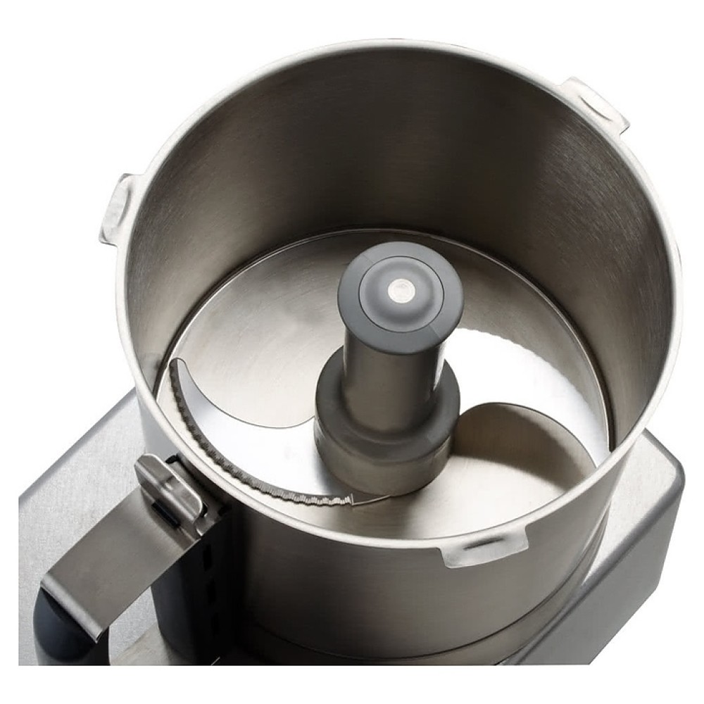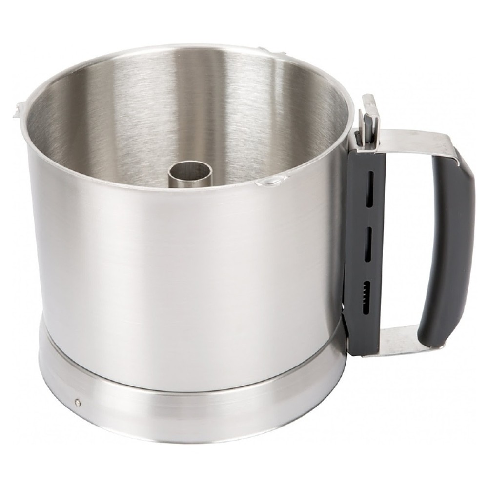 В комплект поставки входят чаша 4,5 л из нержавеющей стали и нож с мелкими зубчиками со съемным колпачком и инструмент для очистки ножа + дополнительная чаша в сборе (чаша, нож, крышка и скребок).