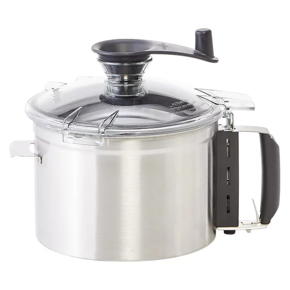 В комплект поставки входят чаша 5,9 л из нержавеющей стали и нож с мелкими зубчиками со съемным колпачком и инструмент для очистки ножа.