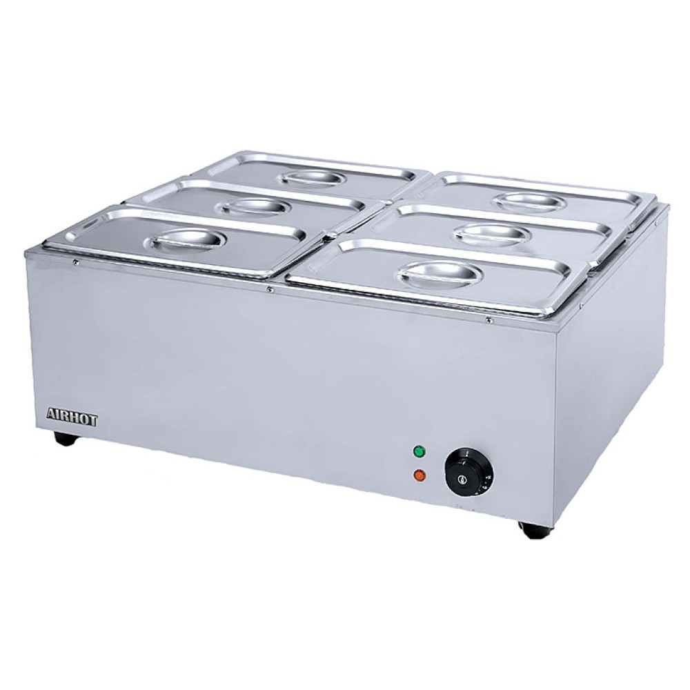 Мармит Airhot BM-6 используется на предприятиях общественного питания для поддержания температуры ранее приготовленных вторых блюд, гарниров и соусов, без их подгорания и возможного пересушивания. Это позволяет подавать блюда горячими и при этом сохранить все вкусовые качества приготовленного продукта. Корпус и гастроемкости выполнены из нержавеющей стали.