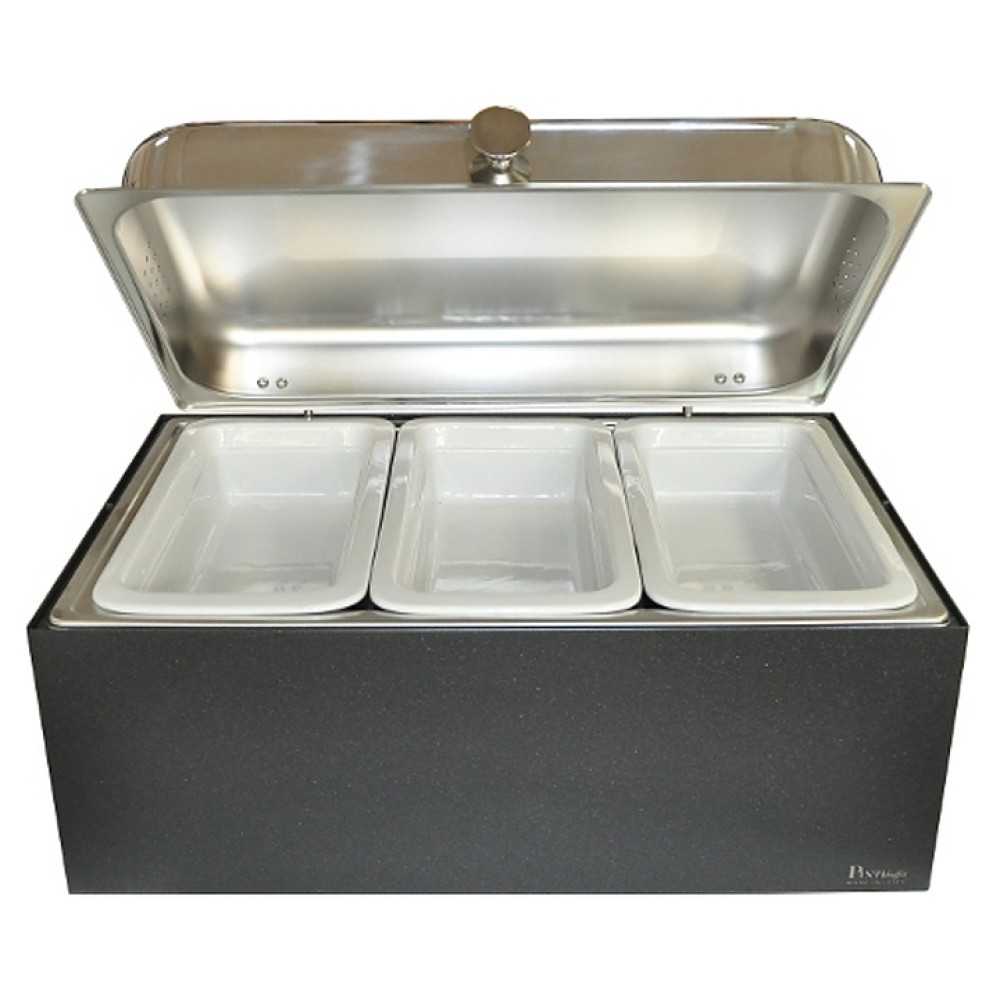 Мармит для сервировки Pintinox Caleido GN1/3-65 используется на предприятиях общественного питания и торговли, в барах, ресторанах и кафе для поддержания в горячем состоянии готовых блюд. Модель оснащена откидной крышкой, 2 горелками и 3 гастроемкостями GN 1/3.