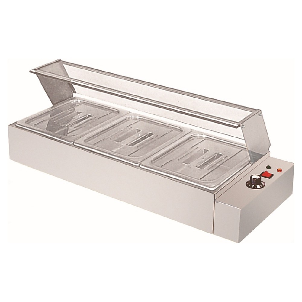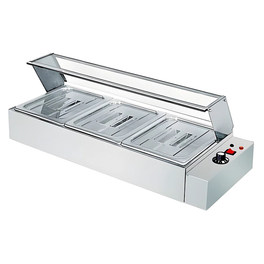 Мармит EKSI HBM-23 рст предназначен для поддержания в горячем состоянии супов, соусов, гарниров и других блюд на предприятиях общественного питания и торговли. Модель оснащена терморегулятором и 3 секциями для гастроемкостей.