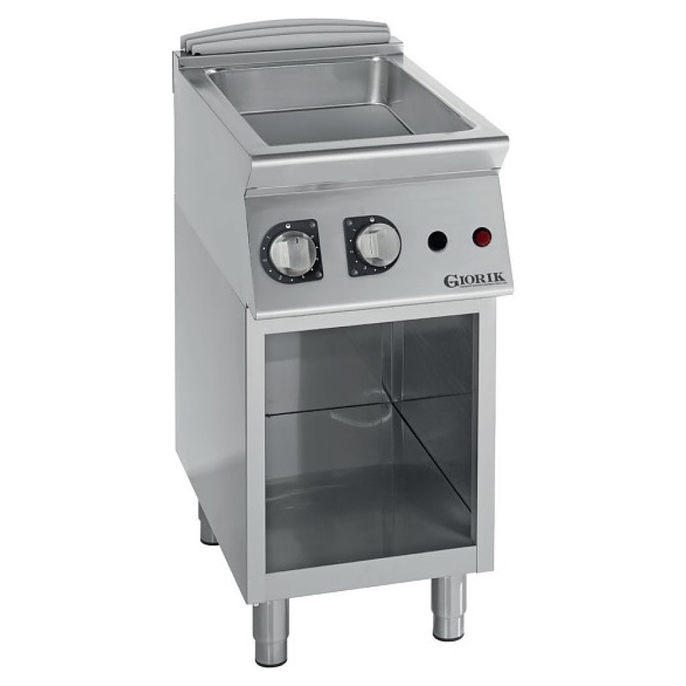 Напольный электрический водяной мармит Giorik Unika 700 BM720E используется на предприятиях общественного питания и торговли для разогрева и поддержания в горячем состоянии приготовленных блюд в гастроемкостях. Модель оснащена ванной прямоугольного сечения и расположенной на наклонной фронтальной стенке электромеханической панелью управления. Внешняя облицовка корпуса выполнена из высококачественной нержавеющей стали.