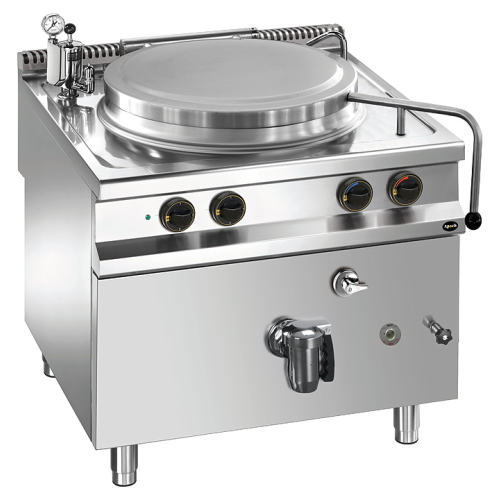 Варочный котел Apach APKE-89I-100L/PL предназначен для приготовления первых блюд, варки овощей и кипячения больших объемов жидкости на предприятиях общественного питания и торговли. Модель оснащена кранами для залива и слива воды, крышкой с системой балансировки и фиксатором и регулируемыми ножками. Бак выполнен из нержавеющей стали AISI 304, дно бака - из нержавеющей стали AISI 316.