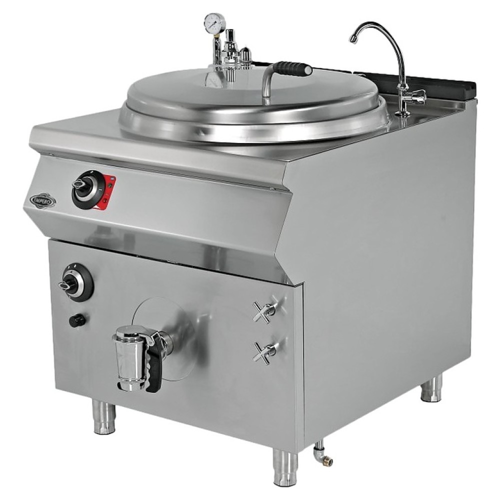 Электрический варочный котел Empero EMP.PLS.KTE.150 серии 900+ предназначен для приготовления первых и третьих блюд, соусов и десертов, а также для кипячения воды на предприятиях пищевой промышленности, общественного питания и торговли. Модель оснащена емкостью с круглой крышкой, трубчатыми электронагревательными элементами (ТЭНами), расположенными на фронтальных стенках краном для розлива продукта и электромеханической панелью управления с 2 поворотными переключателями. Корпус и емкость выполнены из высококачественной нержавеющей стали.