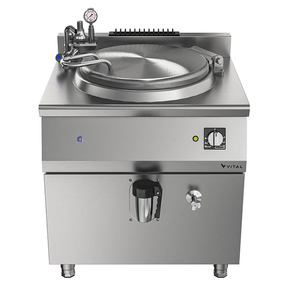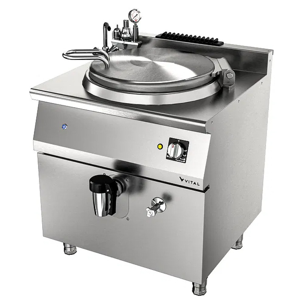 Пищеварочный котел VITAL PRO-EKT7080 предназначен для кипячения воды, приготовления первых, вторых и третьих блюд, варки овощей на предприятиях общественного питания и торговли. Модель оснащена сливным краном, поддоном с двойной паровой рубашкой, откидной крышкой с противовесом, предохранительным клапаном избыточного давления и манометром. Корпус выполнен из нержавеющей стали, термостойкие элементы - из сплава Incoloy 800, устойчивого к высоким температурам, известковой коррозии и химическому воздействию.