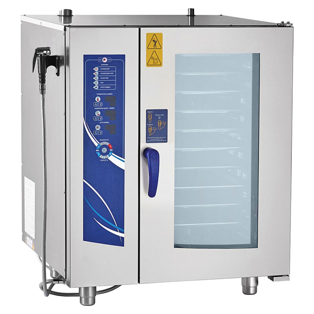 Пароконвектомат Abat ПКА10-1/1ПМ2 предназначен для обжаривания, приготовления на пару, бланширования, запекания и других видов тепловой обработки продуктов на предприятиях общественного питания и торговли. Оборудование заменяет сразу несколько видов приборов: плиту, конвекционную печь, жарочный шкаф, духовку, опрокидывающуюся сковороду, пищеварочный котел, фритюрницу и др. Приготовленные в пароконвектомате блюда сохраняют все полезные вещества. Модель оснащена подсветкой, легкосъемным жировым фильтром, душем для мойки и дверью с двойным остеклением.