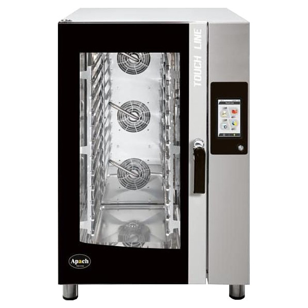 Пароконвектомат Apach AP10T предназначен для обжаривания, приготовления на пару, бланширования, запекания и других видов тепловой обработки продуктов на предприятиях общественного питания и торговли. Подсветка камеры осуществляется галогеновой лампой. Корпус и камера выполнены из нержавеющей стали.