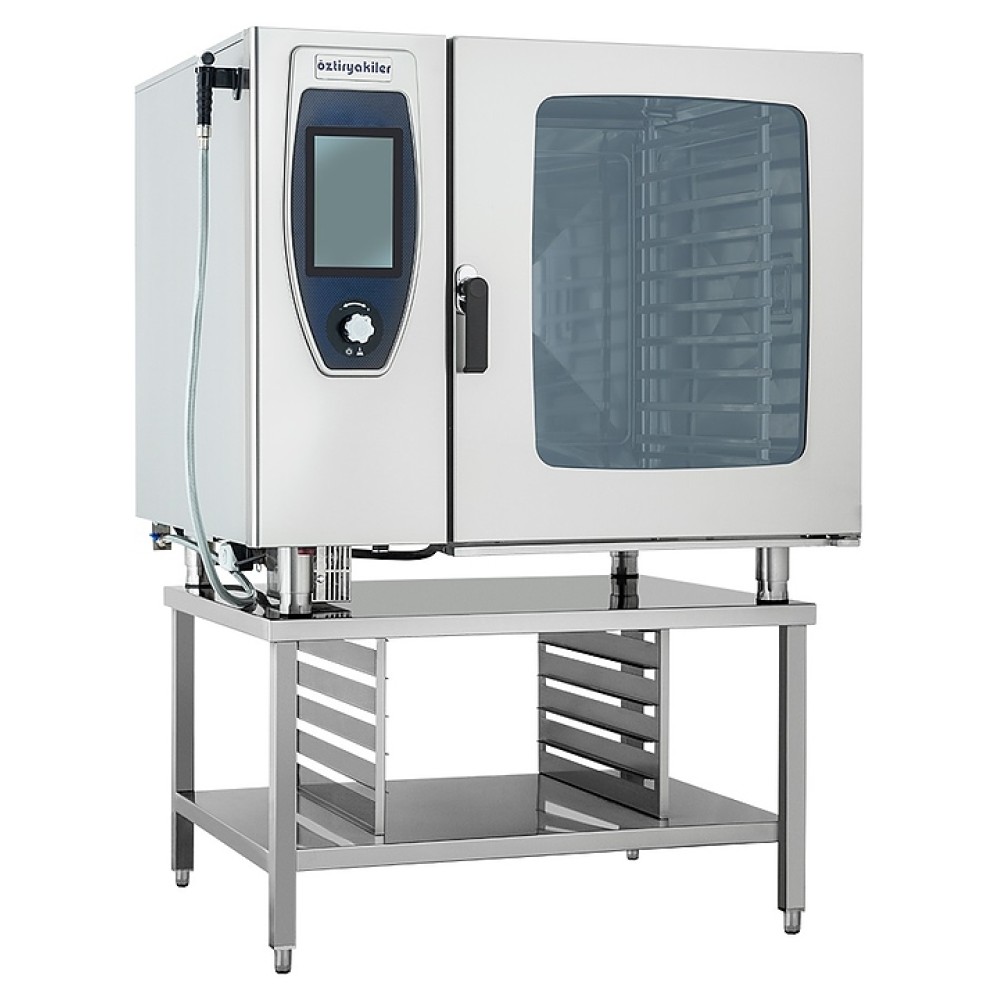 Электрический пароконвектомат OZTI COMBI OKFE 102 C предназначен для приготовления широкого спектра блюд, тепловой обработки продуктов, выпечки хлебобулочных и кондитерских изделий, а также расстойки теста в гостиничном бизнесе, на предприятиях пищевой промышленности, общественного питания и торговли. Модель оснащена камерой с направляющими для гастроемкостей, правосторонней распашной дверью с поворотной рукояткой, электромеханической панелью управления с сенсорным дисплеем и поворотным переключателем. Корпус выполнен из высококачественной нержавеющей стали марки AISI 430, внутренняя облицовка камеры и бойлер – из нержавеющей стали марки AISI 304.