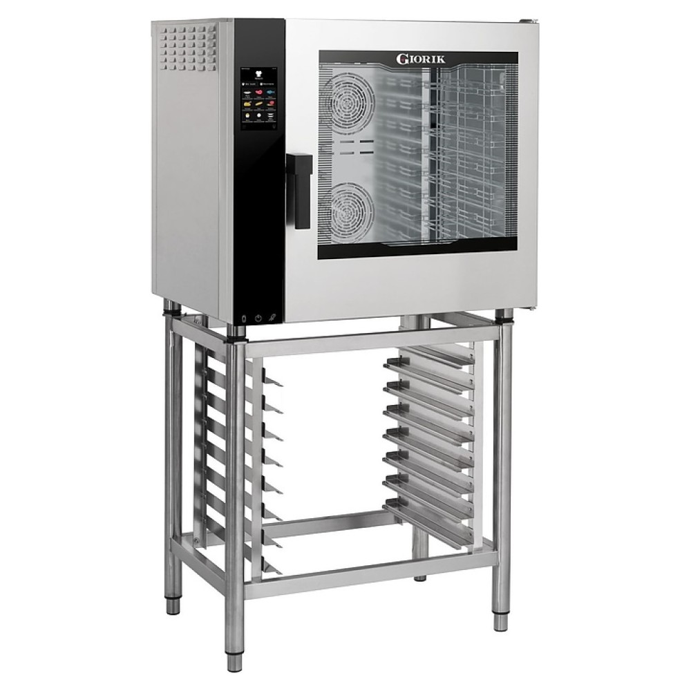 Электрический пароконвектомат Giorik Movair NMTE7XW_R предназначен для приготовления широкого спектра блюд, выпечки хлебобулочных и кондитерских изделий в гостиничном и ресторанном бизнесе, на предприятиях пищевой промышленности, общественного питания и торговли. Модель оснащена рабочей камерой с расположенными в задней стенке 2 вентиляторами, 7 уровнями направляющих для гастроемкостей и противней, правосторонней распашной дверью с обзорным остеклением и рукояткой, расположенным с левой стороны фронта цветным сенсорным дисплеем управления и индикации с символьными, графическими и цифровыми сегментами.