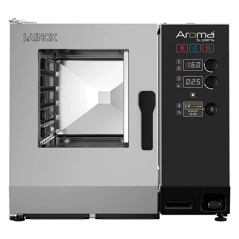 Пароконвектомат Lainox AROMA SAPIENS BOOSTED ARES054B предназначен для выпечки изделий из теста и приготовления различных блюд и полуфабрикатов на предприятиях общественного питания и торговли. Модель оснащена электронной панелью управления, 6-скоростным вентилятором с автореверсом для идеальной равномерности готовки, датчиком-термощупом, светодиодным освещением рабочей камеры с низким энергопотреблением, встроенным каплесборником и дверцей с ручкой. Корпус изготовлен из нержавеющей стали, рабочая камера - из штампованной нержавеющей стали 18/10 AISI 304, толщиной 1 мм.