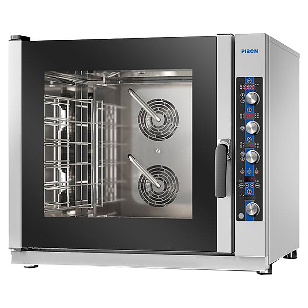 Пароконвектомат PIRON PF9106D предназначен для обжаривания, приготовления на пару, бланширования, запекания и других видов тепловой обработки продуктов на предприятиях общественного питания и торговли. Камера изготовлена из нержавеющей стали AISI304.