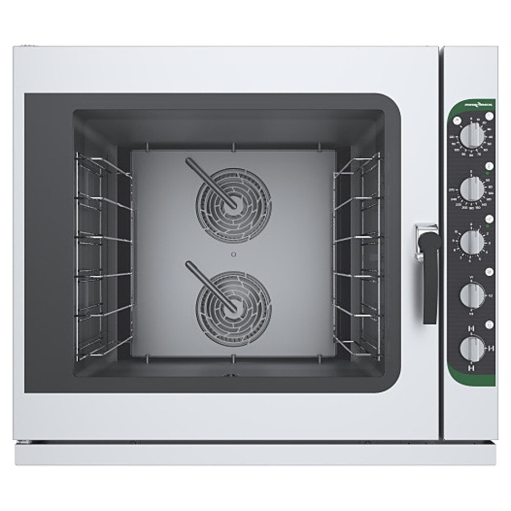 Пароконвектомат Пищевые Технологии ПР-06М предназначен для приготовления блюд и выпечки хлебобулочных изделий на предприятиях общественного питания. Может использоваться самостоятельно или в составе технологической линии. Модель оснащена электромеханической панелью управления, универсальными направляющими для гастроемкостей и противней и ручным таймером.