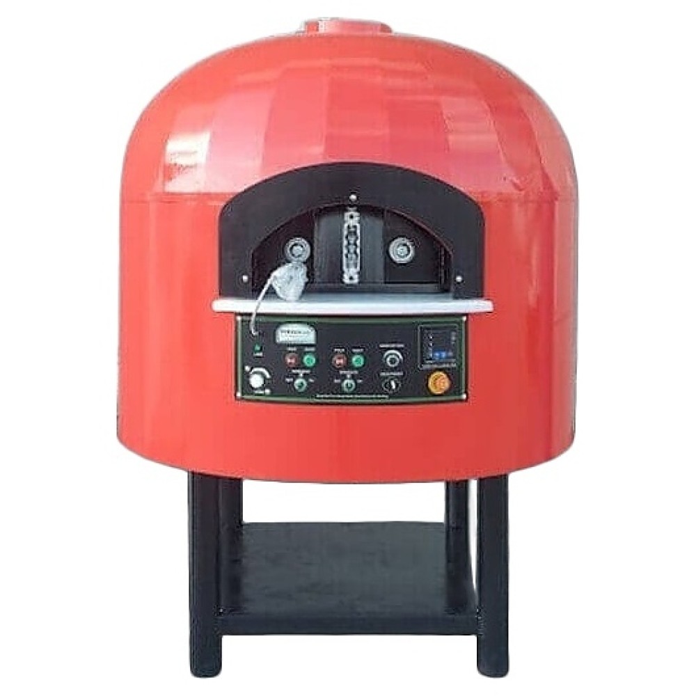 Электрическая ротационная печь Firinmak ElectroRot 120 используется в ресторанах, барах, кафе, на других предприятиях общественного питания и торговли для выпекания пиццы, хлеба и пирогов, приготовления шашлыка и гриль-блюд, обжарки, тушения и запекания по рецептуре, основанной на томлении и длительной выдержке при медленно падающей температуре. Модель оснащена камерой с моторизованным подом и куполом круглого сечения, заглубленным устьем в форме арки с фиксированными боковыми и съемной центральной заслонками, отверстием дымохода сверху, расположенной под устьем электромеханической панелью управления с поворотными переключателями, функциональными клавишами, светодиодными индикаторами и цифровыми дисплеями. Купол выполнен из огнеупорных бетонных блоков, стенд – из металла с антикоррозийным покрытием, внешняя облицовка купола – из листовой стали с антикоррозийным покрытием порошковой краской, теплоизоляция свода купола – из минеральной ваты, теплоизоляция основания – из газобетона.