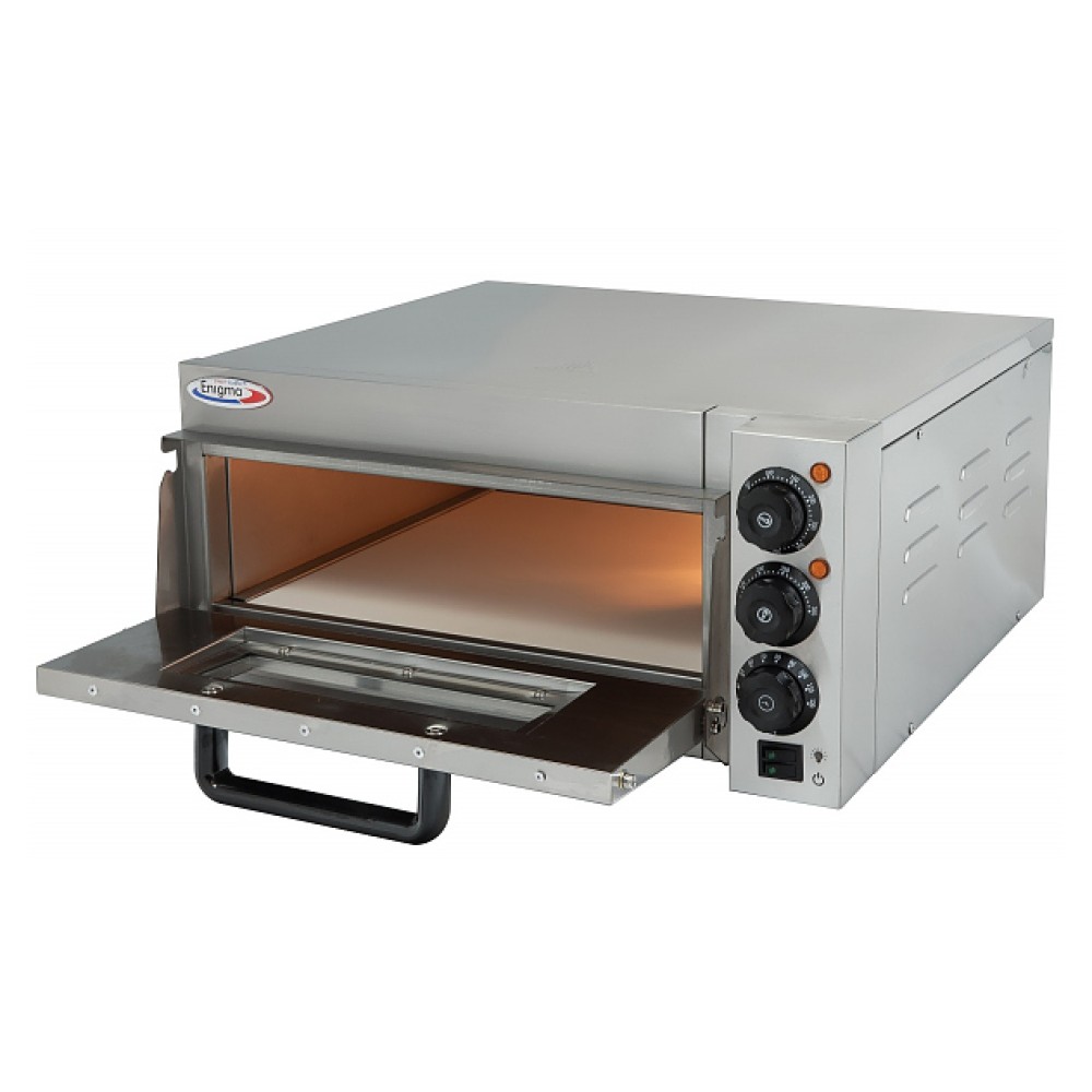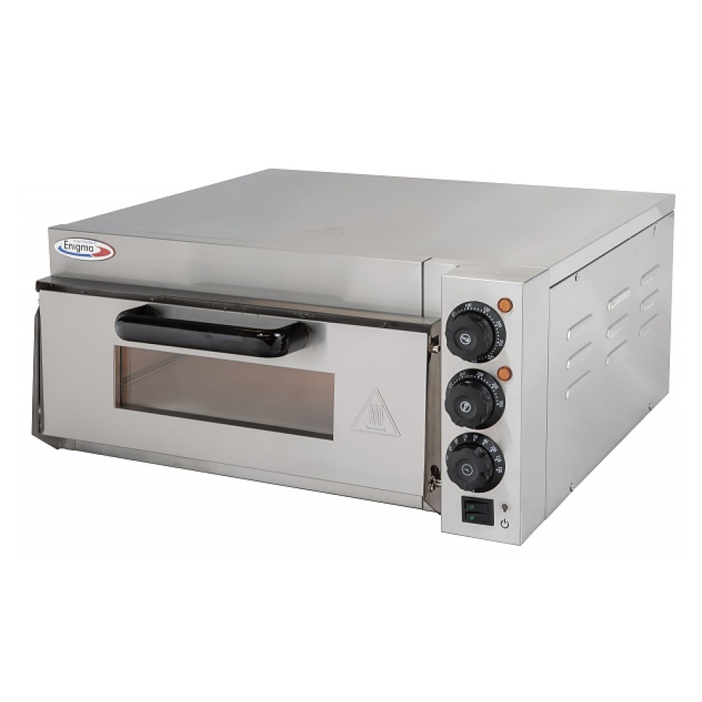 Печь Enigma EP-1ST предназначена для приготовления и разогрева пиццы, горячих бутербродов, хлеба и хлебобулочных изделий на предприятиях общественного питания и торговли. Модель оснащена электромеханической панелью управления и таймером. Корпус выполнен из нержавеющей стали, материал пода - огнеупорный камень.